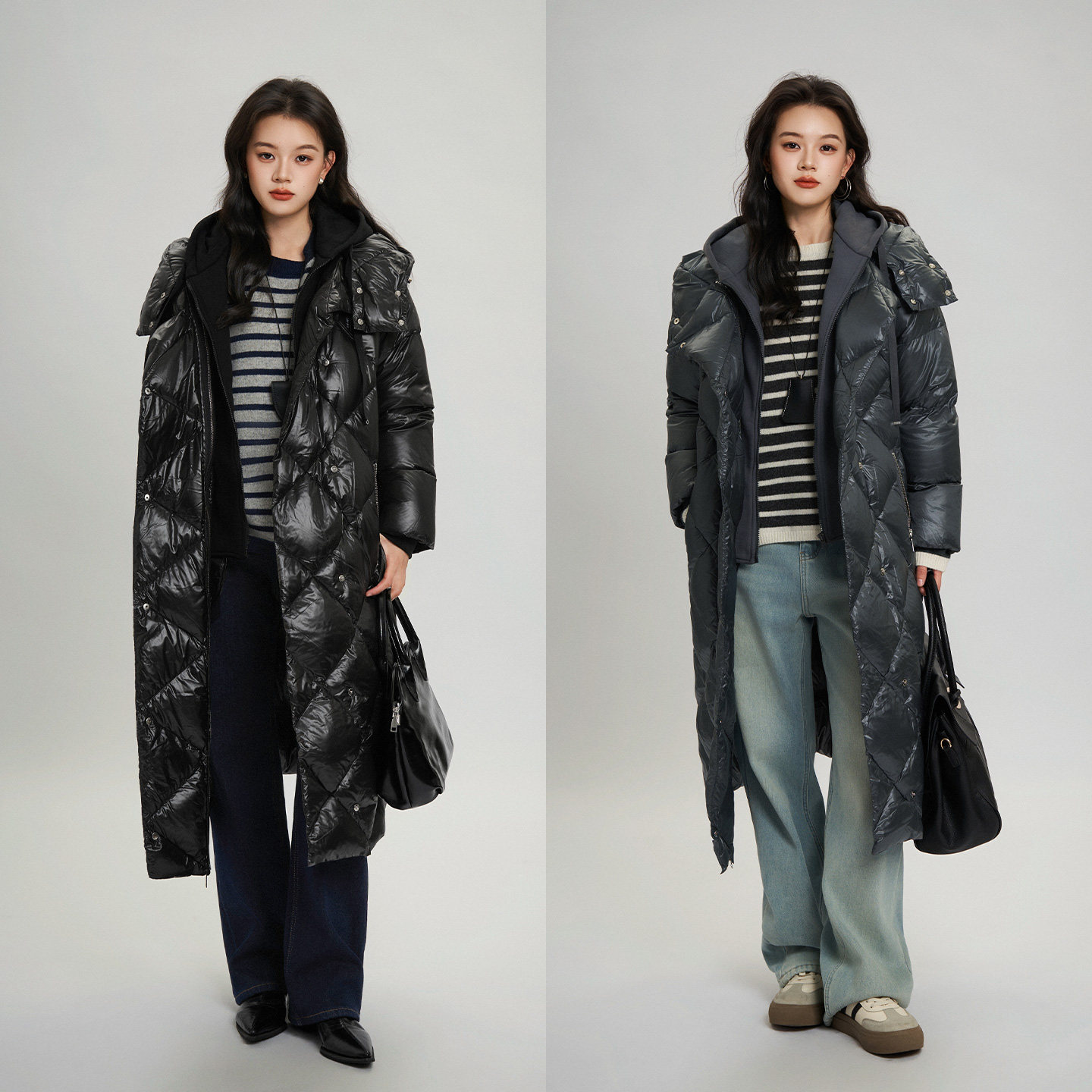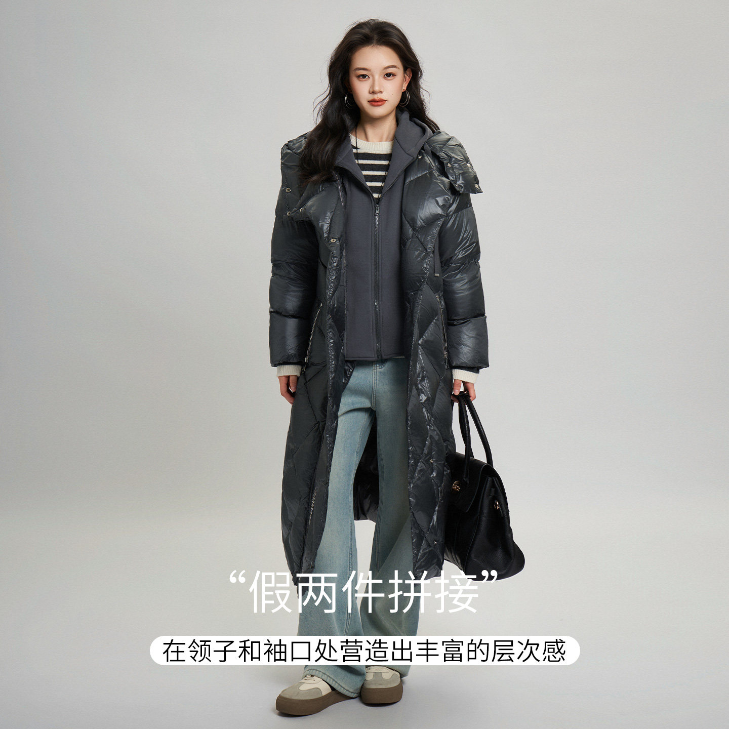 📚 IVYKKI艾维拼接假两件羽绒服女中长款休闲鸭绒外套2025年冬季新款