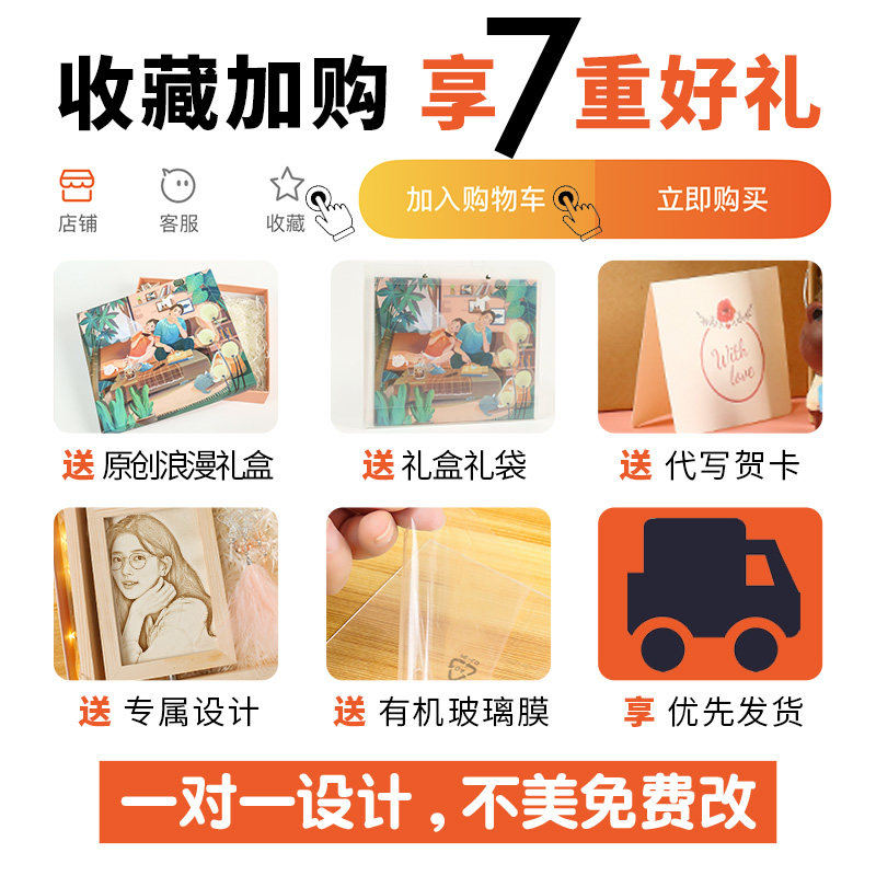 📚 生日礼物送女朋友老婆闺蜜相框摆台毕业情人节礼物木刻画定制照片