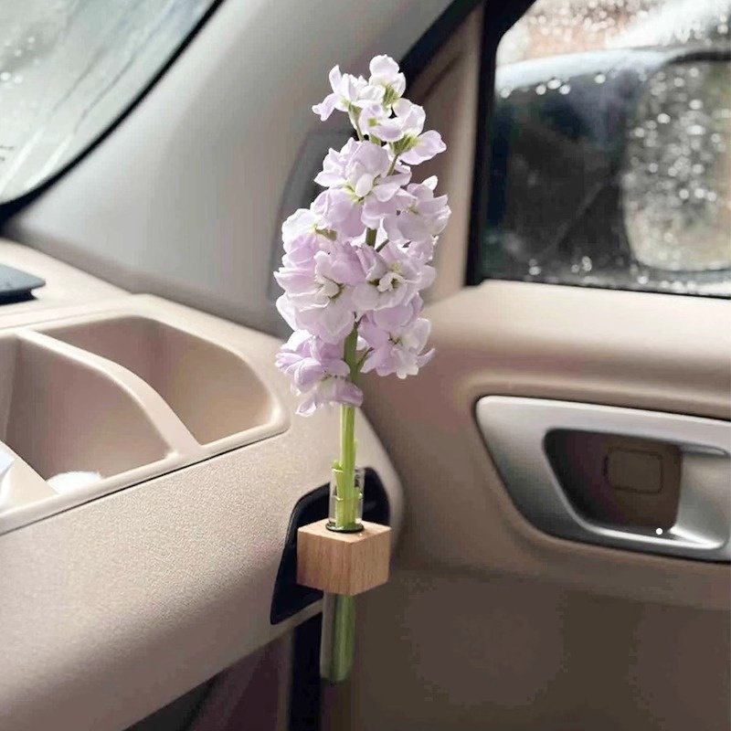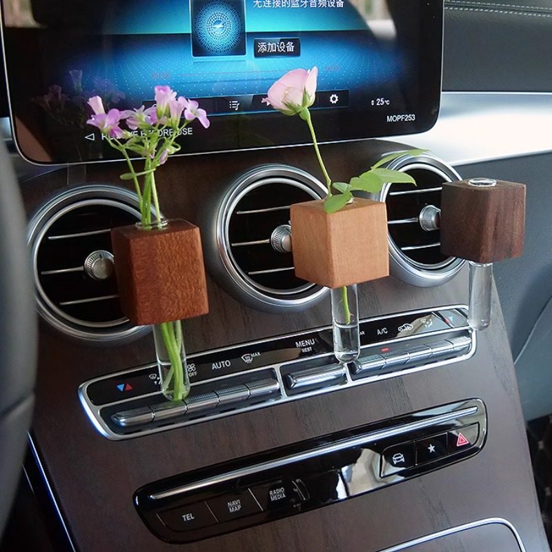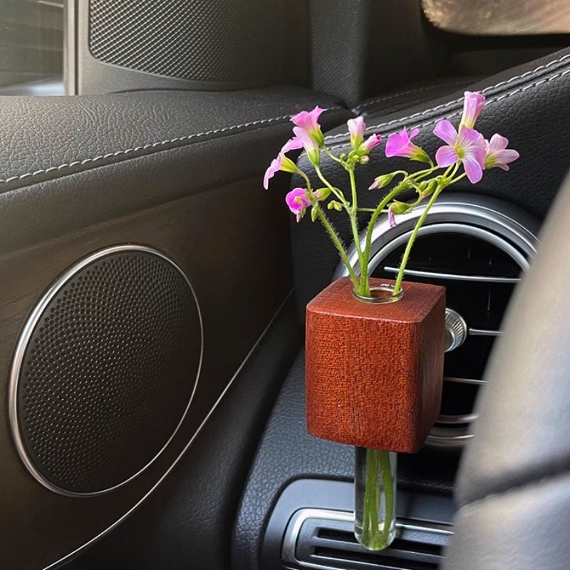 📚 黑胡桃木色汽车载插花器空调出风口香薰装饰小花瓶内饰摆件饰品