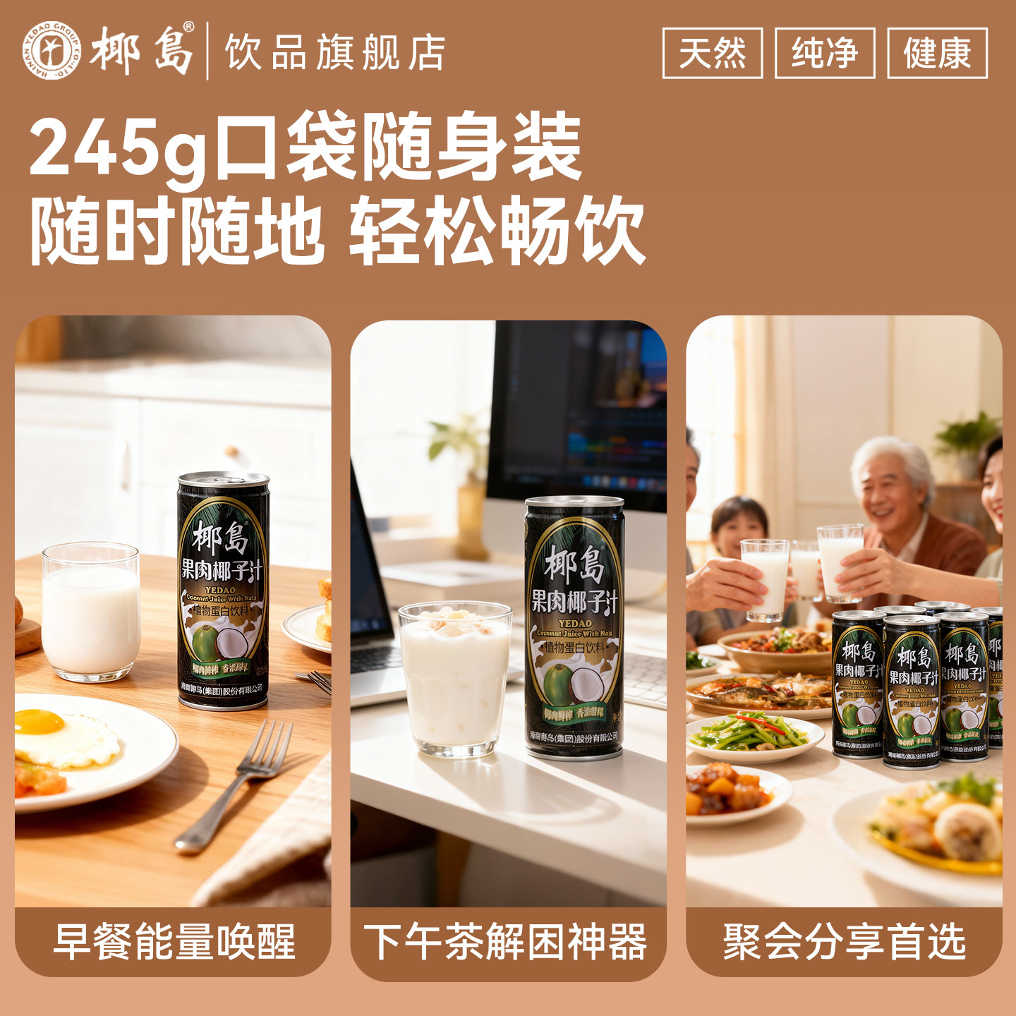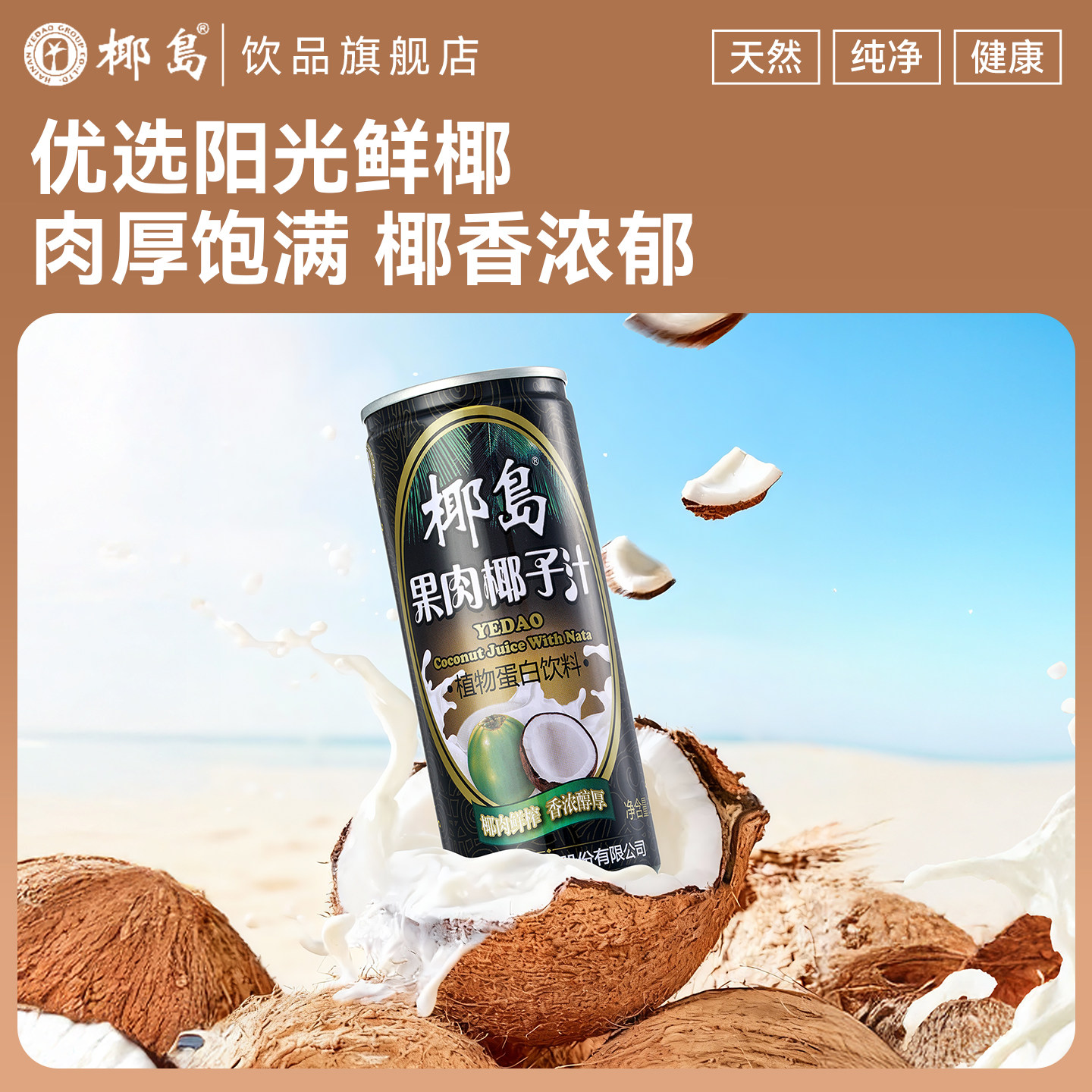 📚 椰岛果肉椰子汁245g正宗海南新鲜生榨椰汁旗舰店植物蛋白饮料整箱