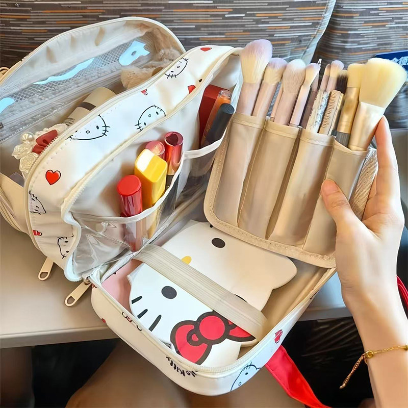 📚 可爱猫咪化妆包大容量女外出可挂行李箱化妆收纳包分区旅行洗漱包