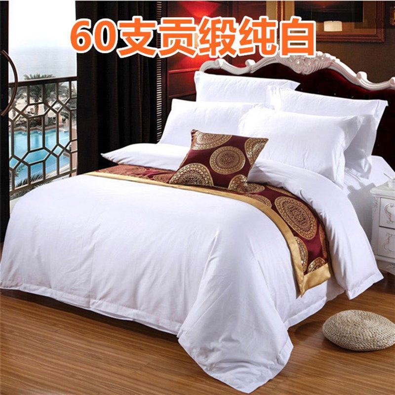 📚 星级酒店专用床上用品宾馆三四件套涤棉床单旅馆医院白色被套套件