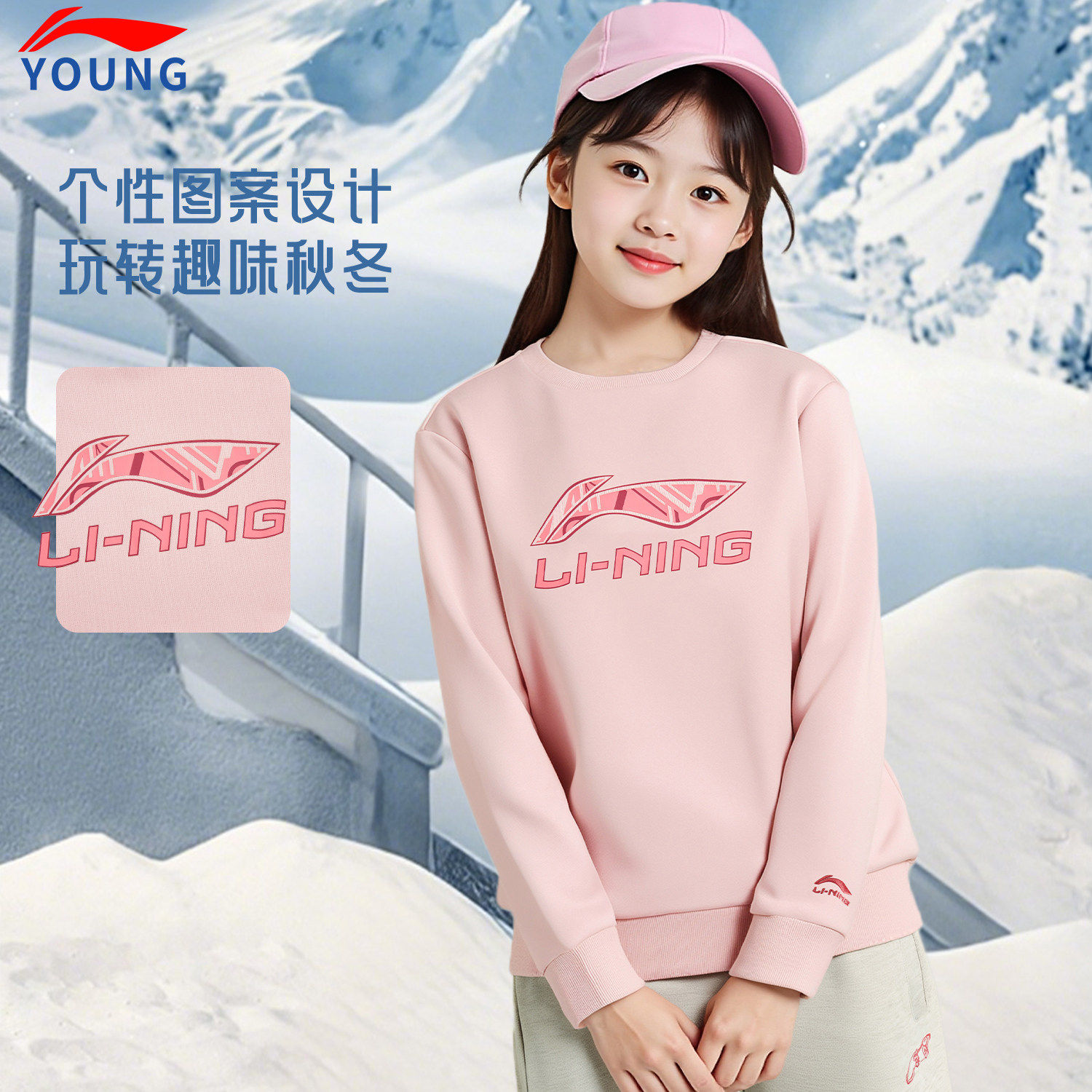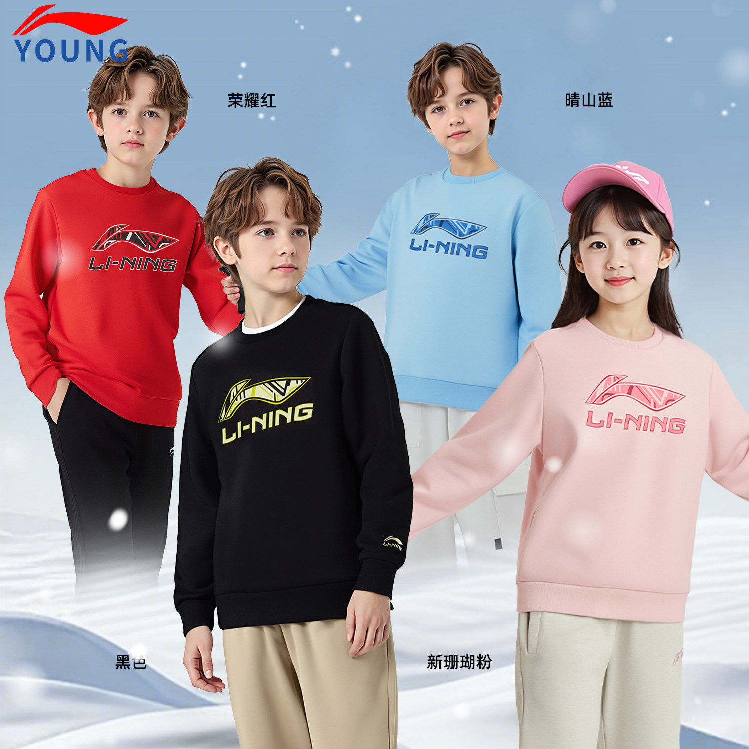 📚 李宁新年款卫衣男女童加绒保暖秋冬红色喜庆马年本名无帽套头上衣