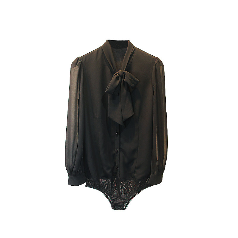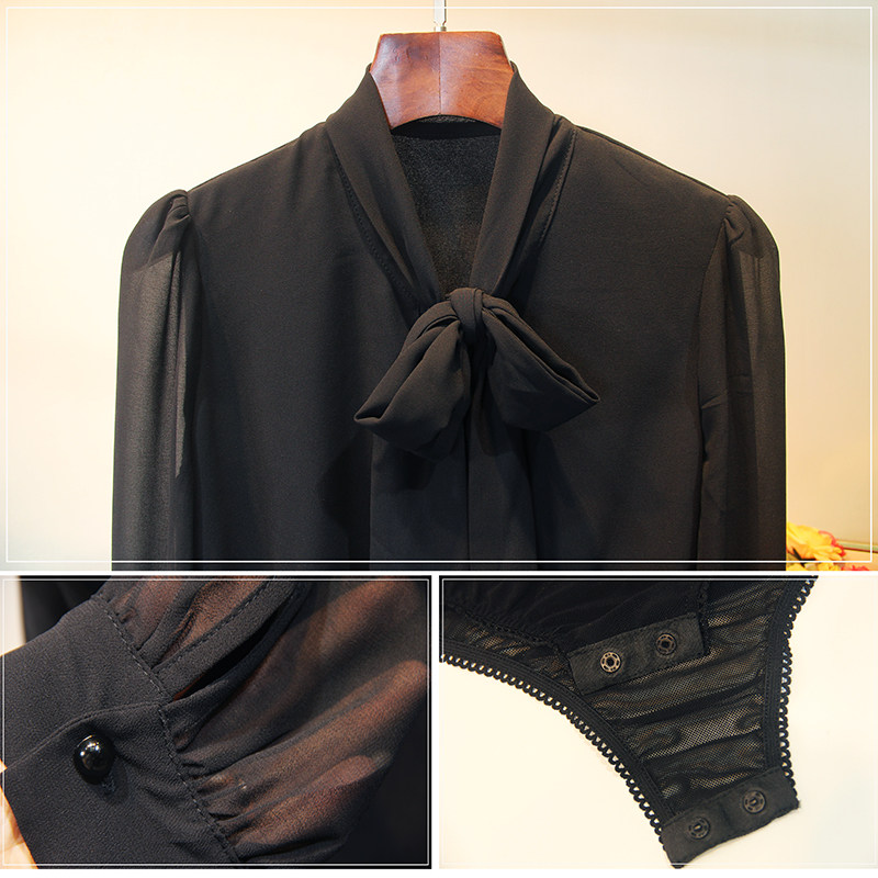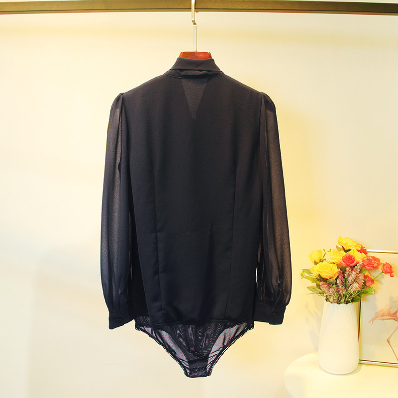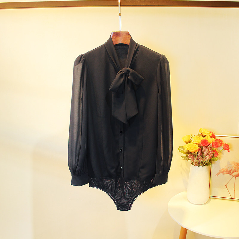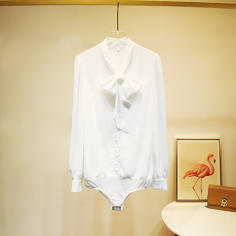 📚 新款秋装宽松时尚雪纺蝴蝶结连体衬衫女长袖气质职业连裆衬衣