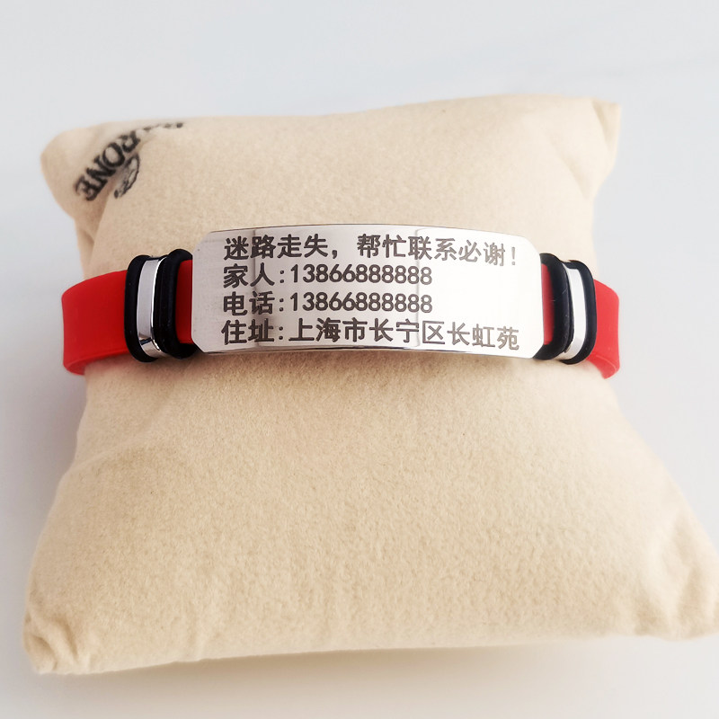 📚 免费定制老人儿童防走失手环防摘 老年痴呆信息牌 刻字硅胶手环