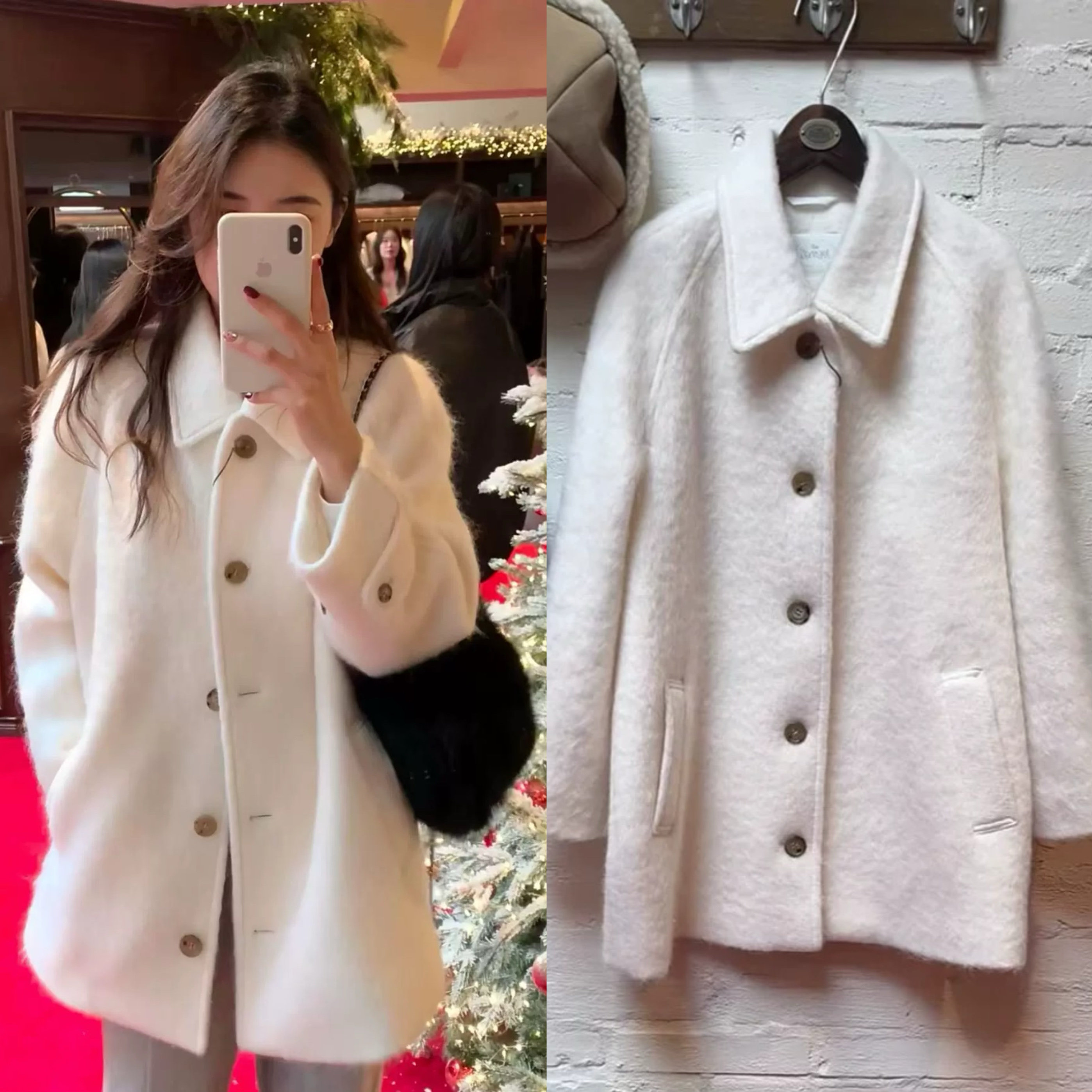 📚 国内现货 the barnnet 25春季新款 八奶单排扣白色毛毛大衣外套女