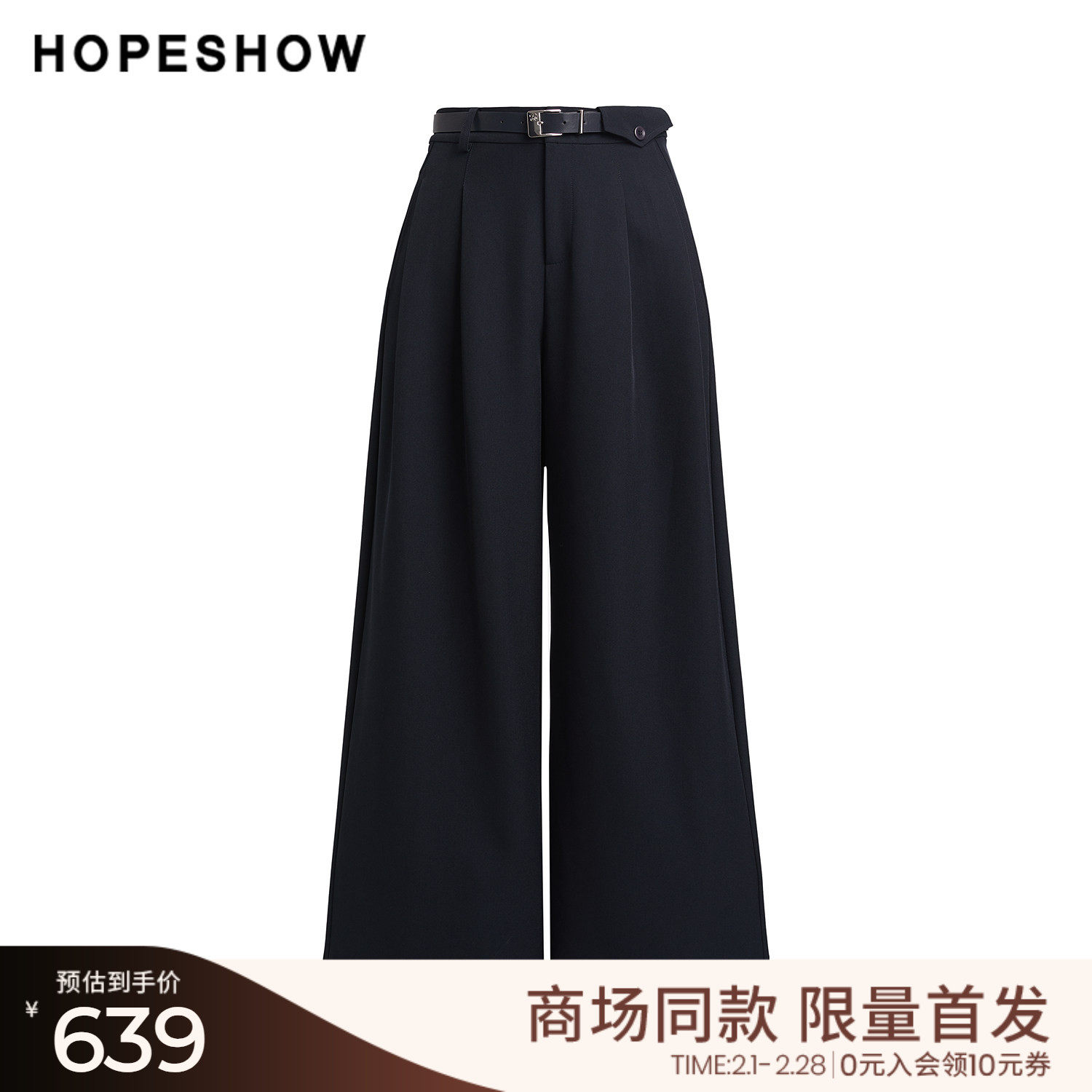 📚 红袖商场同款HOPESHOW2025冬新款女装拼接拉链阔腿西装长裤