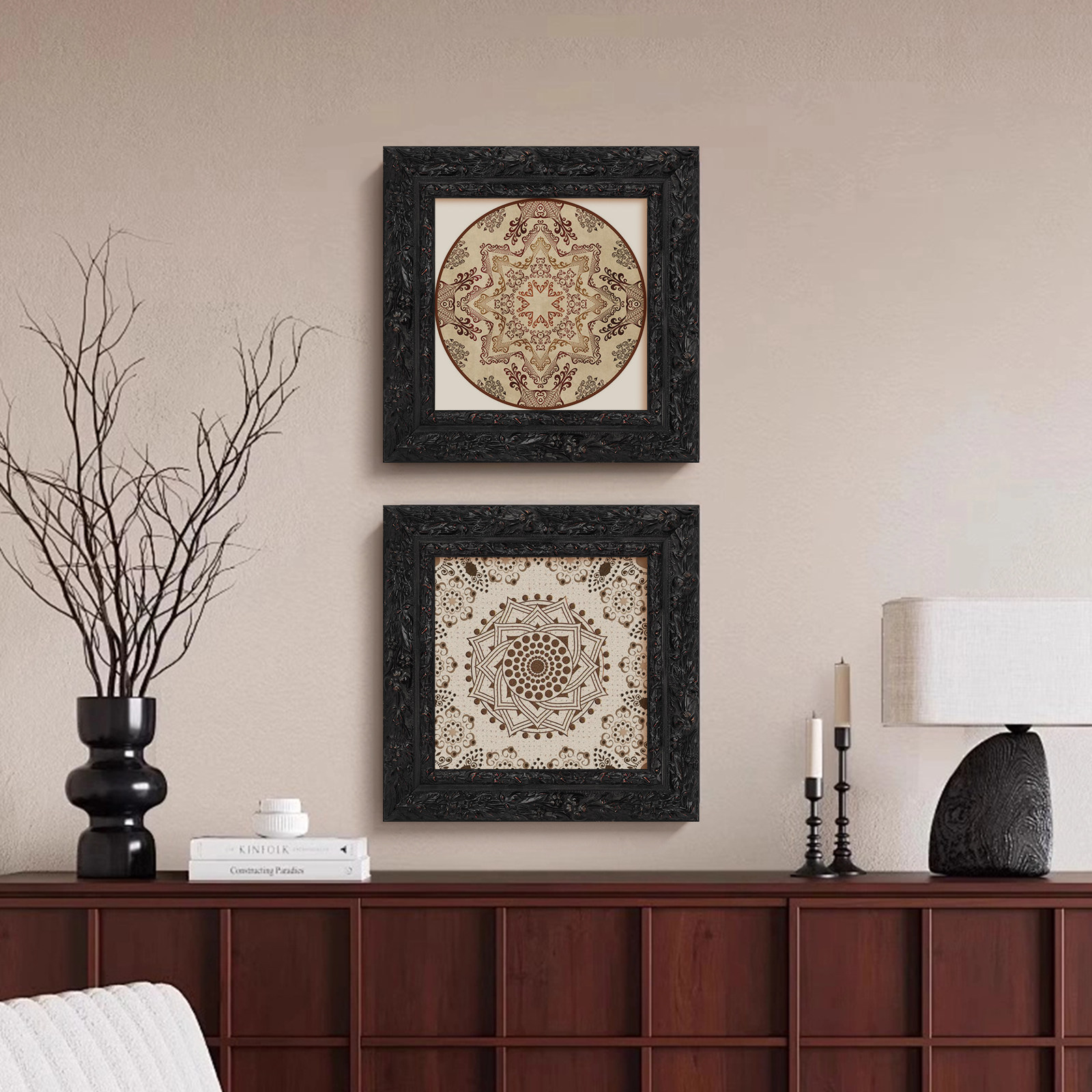 📚 暗黑风欧式复古实木画框经典印花重工定制油画外框挂墙拼图框定制