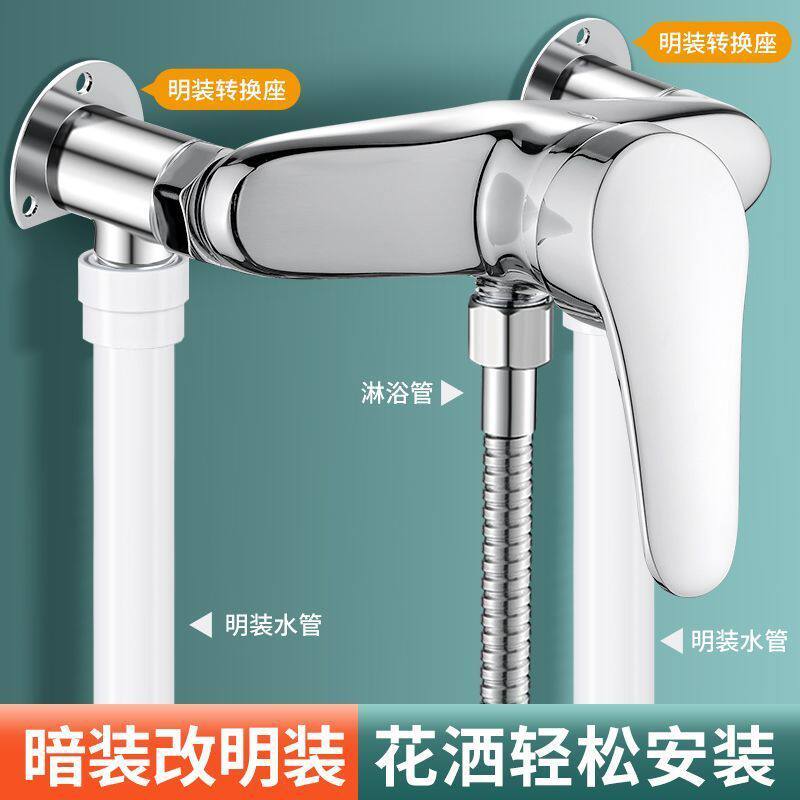📚 4分明装水龙头移位器304钢固定底座淋浴花洒暗装改明装转换改装件