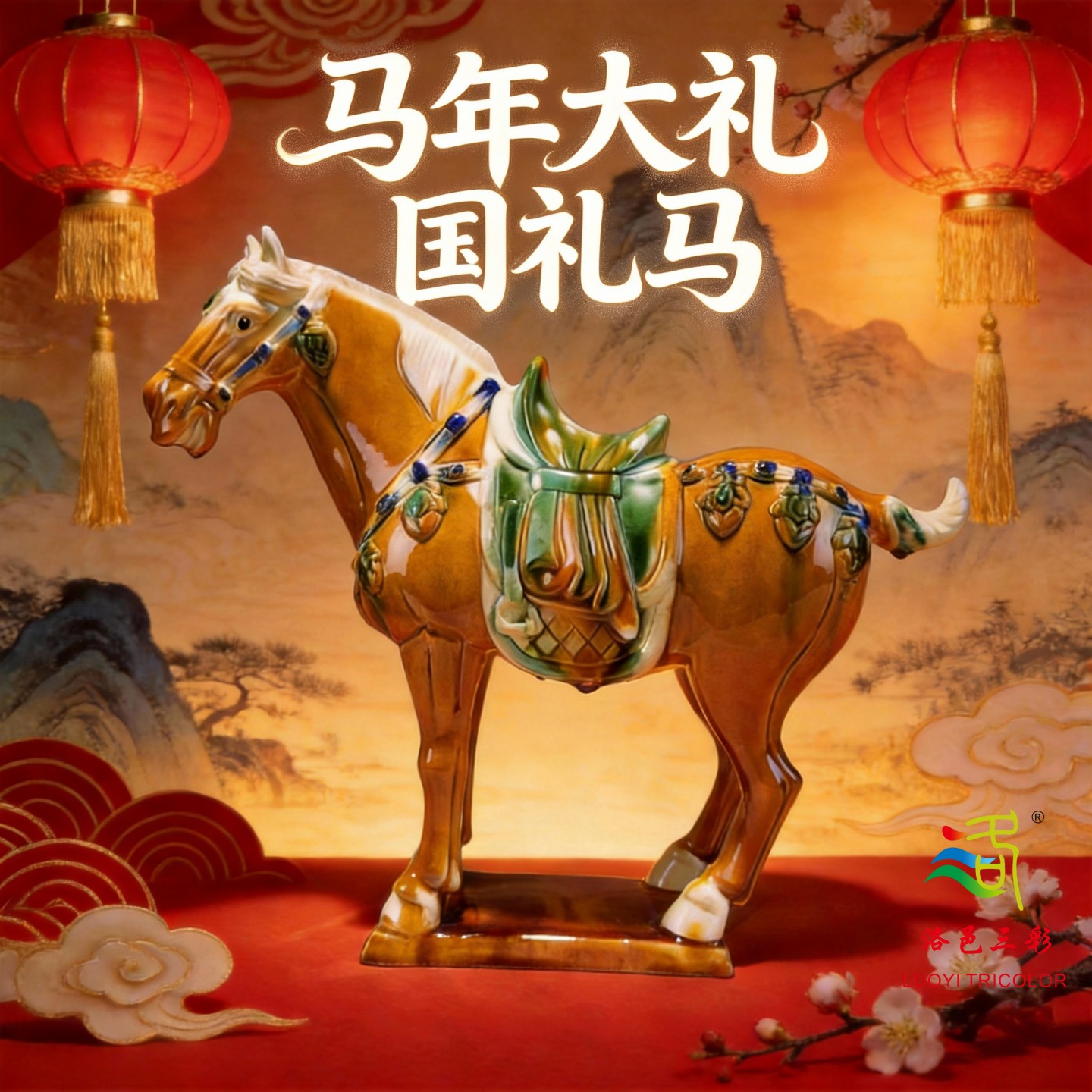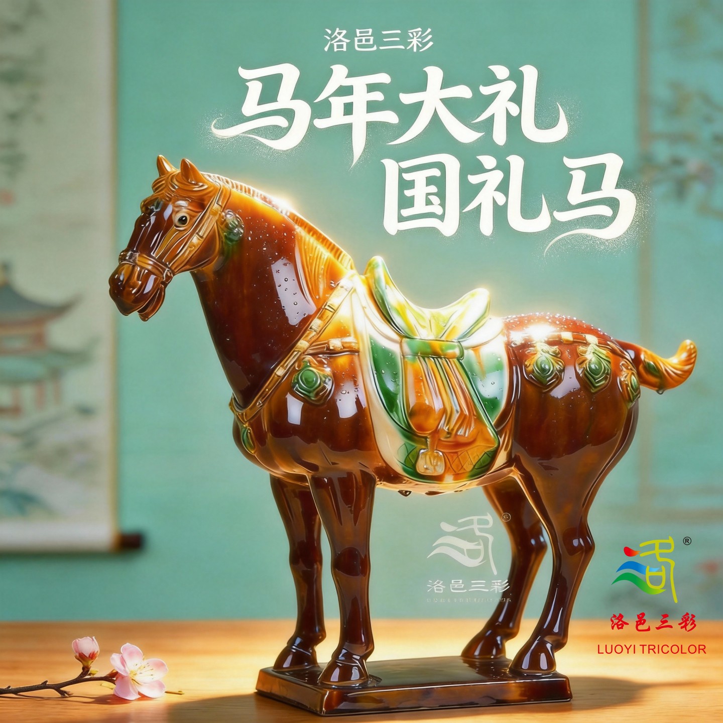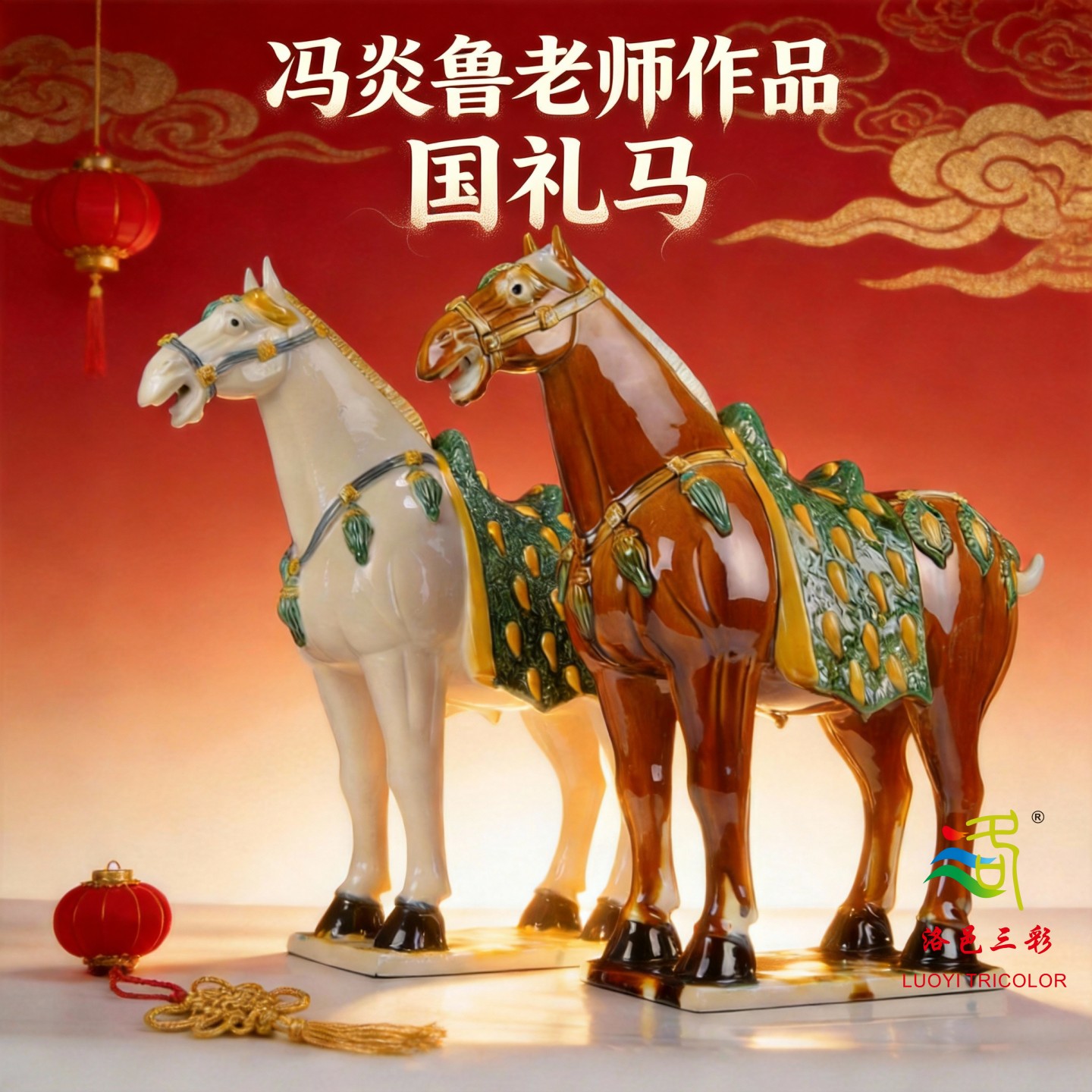 💥洛邑三彩国礼!迎宾马博物馆文物复制陶瓷工艺品装饰摆件,惊艳你的中国风礼品🎁