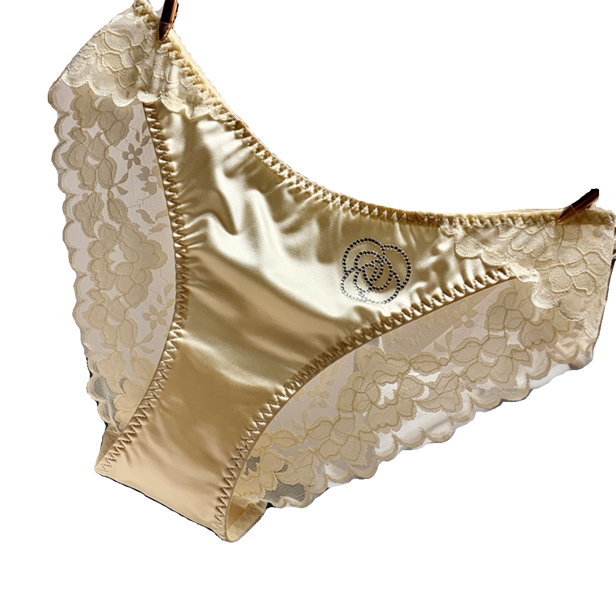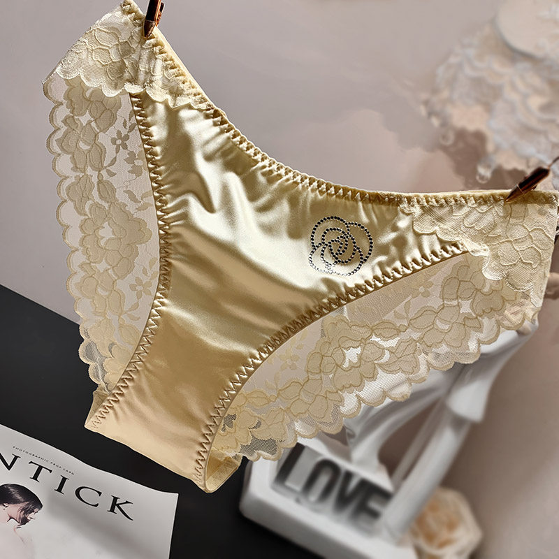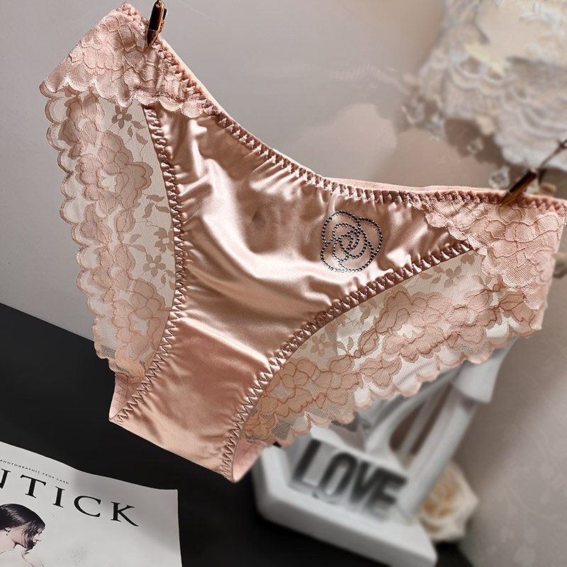📚 欧美法式轻奢性感蕾丝内裤女山茶花无痕丝滑缎面女士三角裤纯棉裆