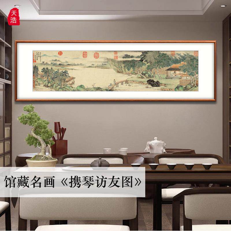 📚 名人仿古做绿旧画携琴访图携琴访友古青画山水画文人墨客茶室书房