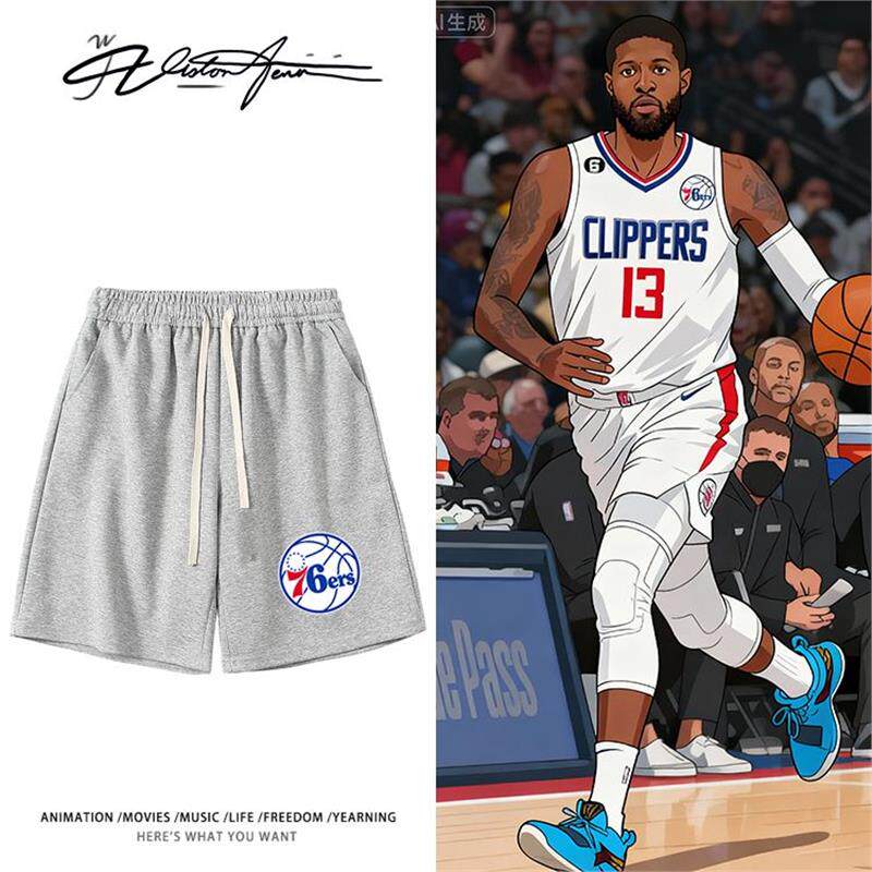 📚 快船七十六人保罗乔治队标印花应援短裤夏季宽松休闲百搭