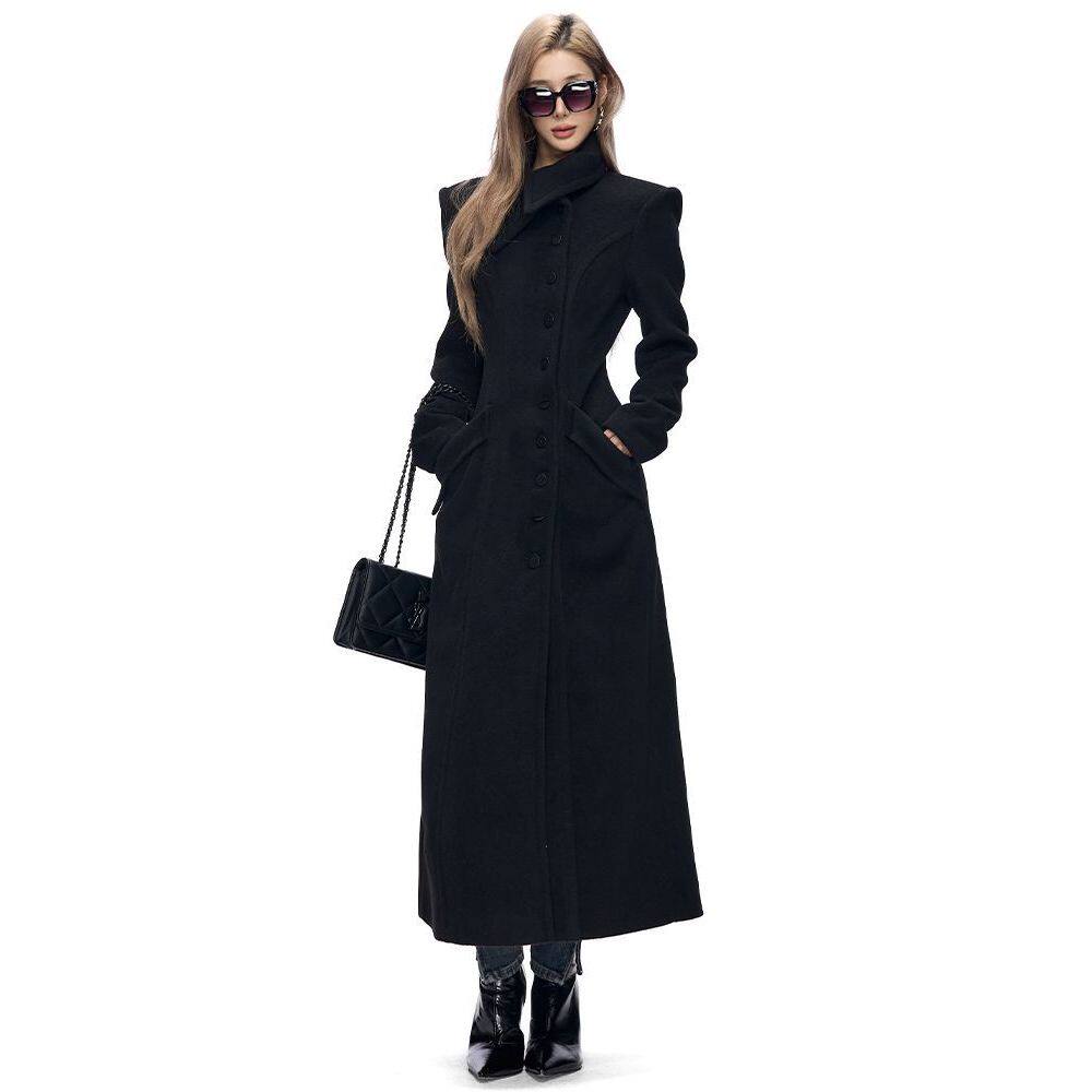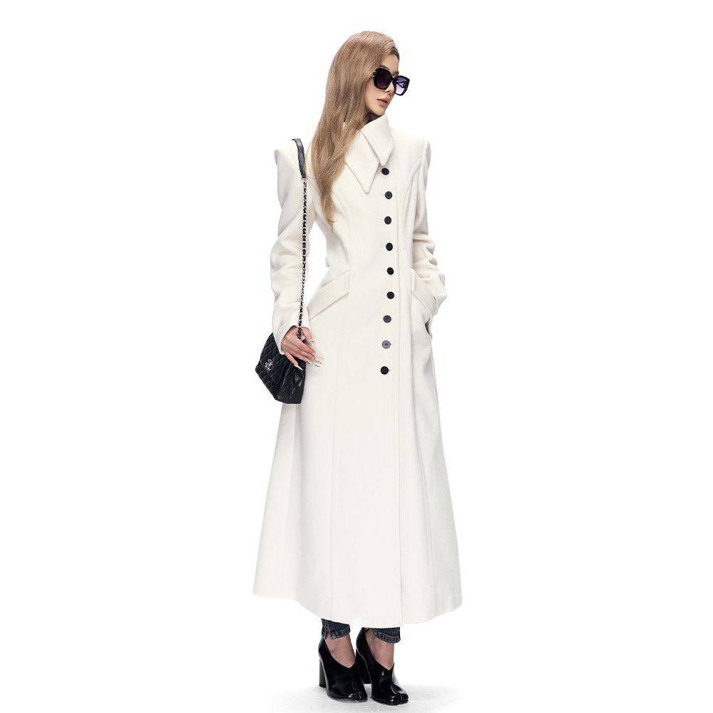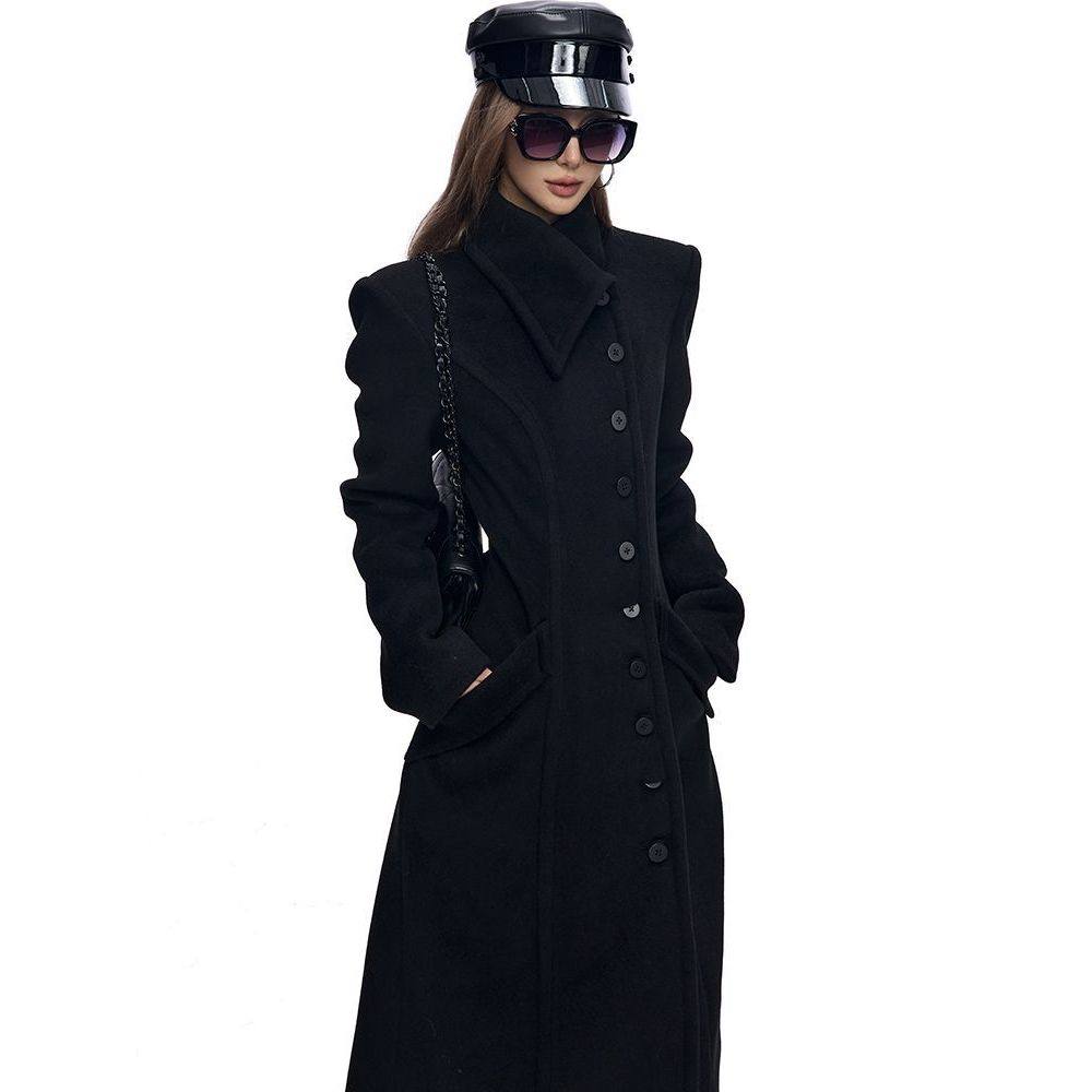 📚 【奥本海默】英伦风花苞大翻领长款收腰外套经典A字摆赫本风大衣