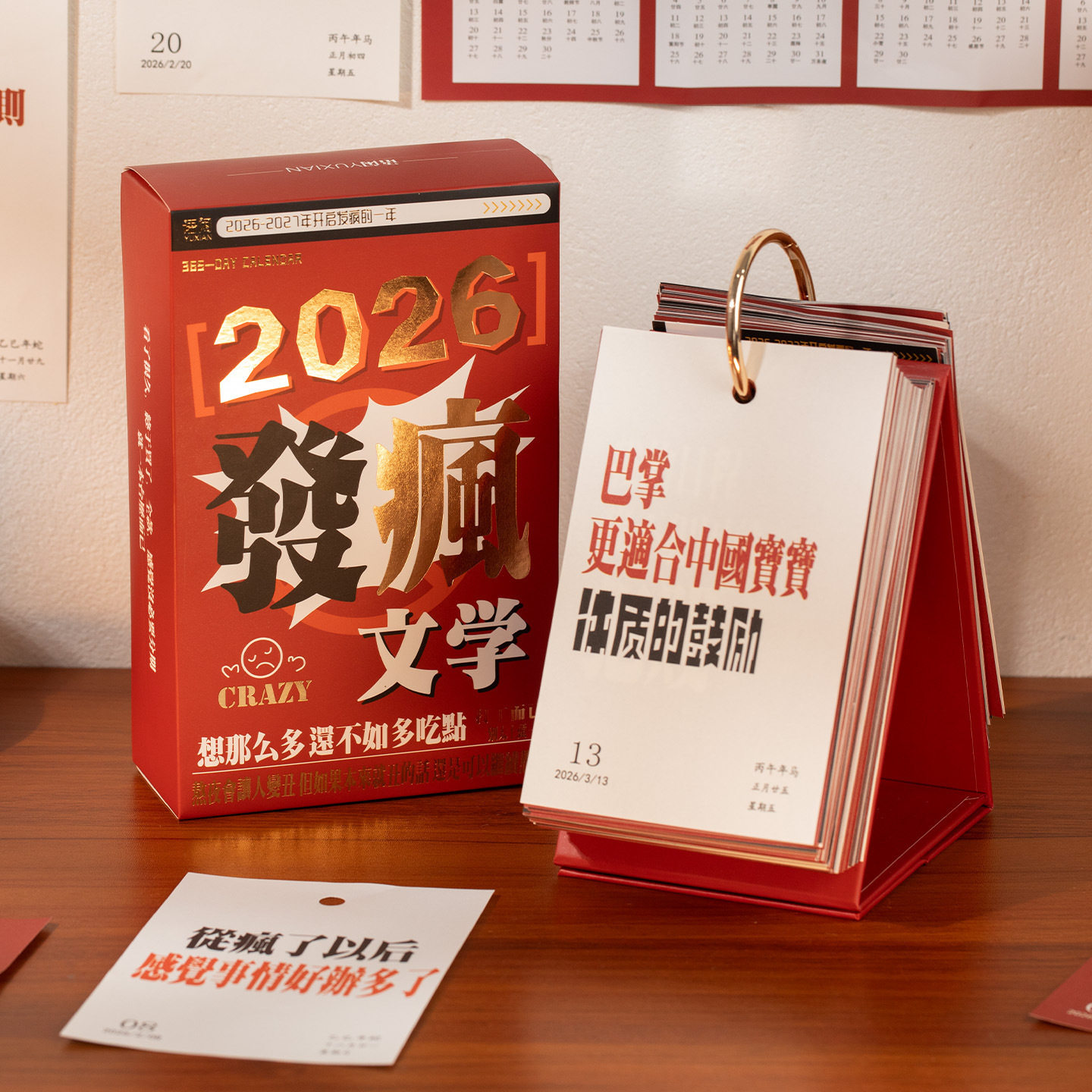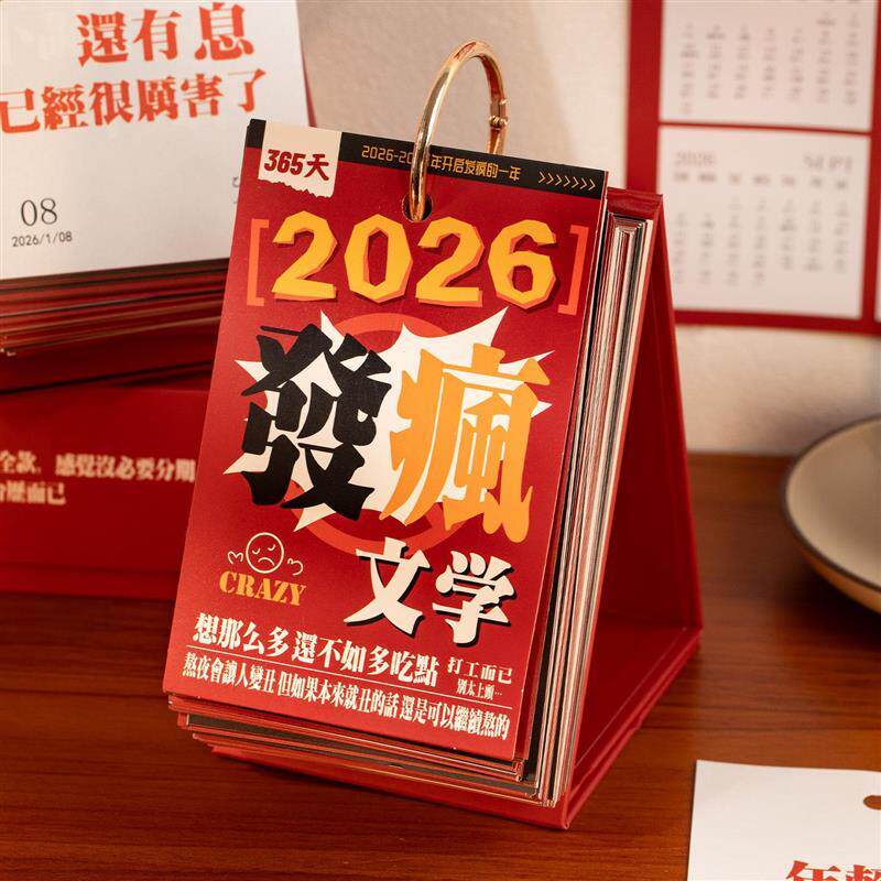📚 语闲2026红色发疯文学365台历 趣味解压文案备忘标记日历桌面摆件