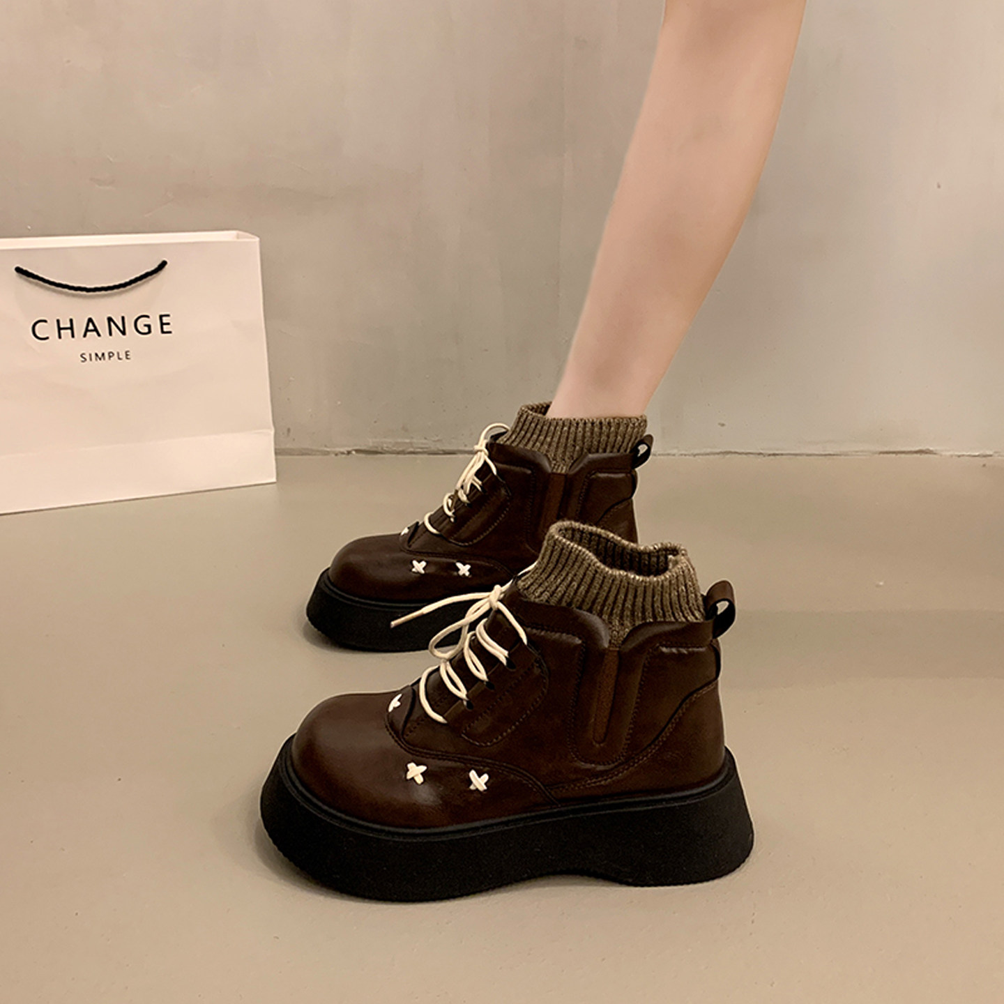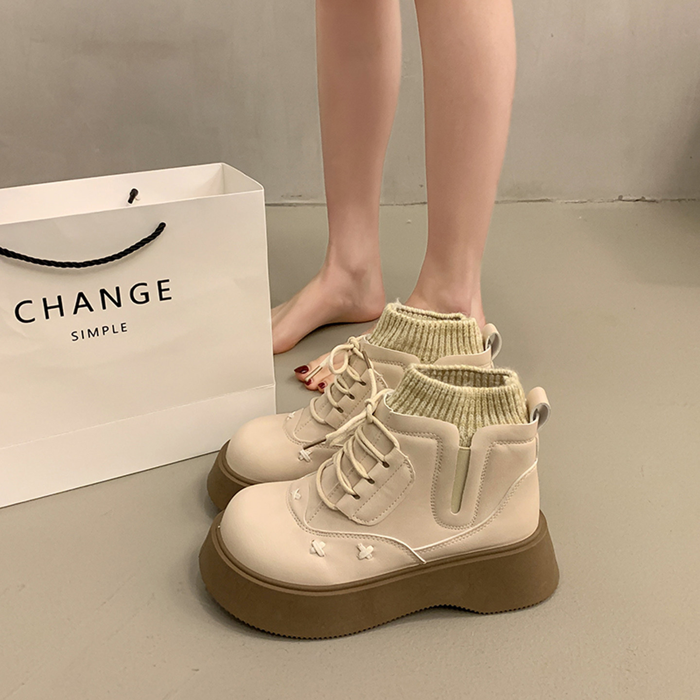 📚 高级感炸街松糕厚底马丁靴女小个子增高2025超火新款爆款冬季短靴
