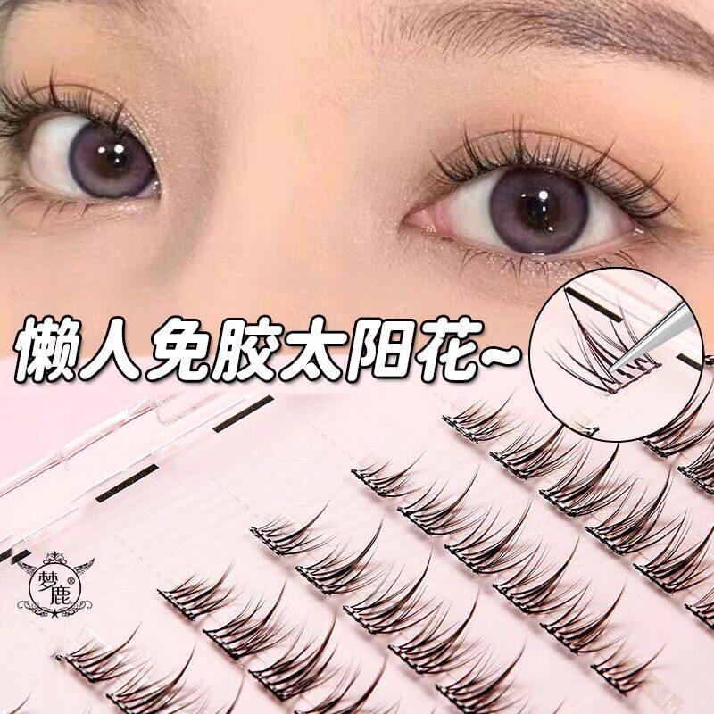 📚 无梗免胶免卸纯欲双尖太阳花隐形假睫毛轻盈自粘分段式新手好贴