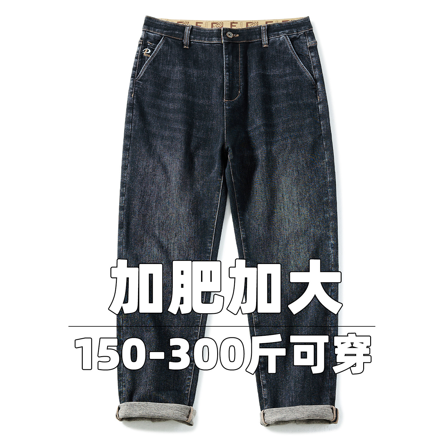 📚 加绒厚款牛仔裤男宽松直筒高弹力高腰商务百搭加肥加大胖子300斤