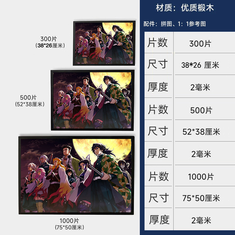 📚 鬼灭之刃祢豆子动漫木质拼图1000片500片礼品定制益智玩具周边