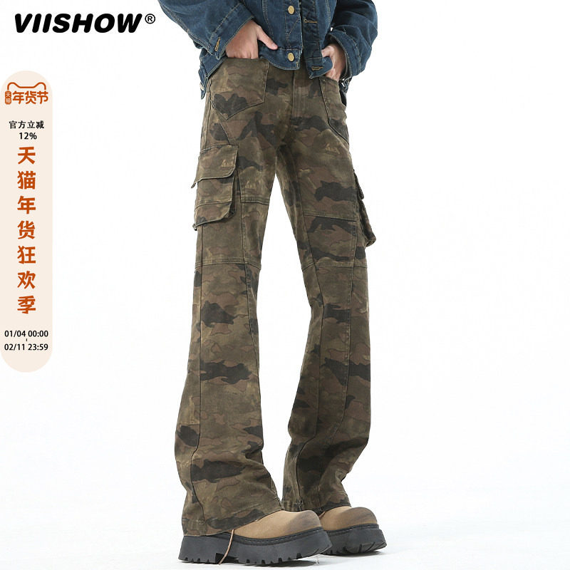 📚 VIISHOW夏季新款美式迷彩裤潮牌工装裤男喇叭裤高挑百搭长裤子男