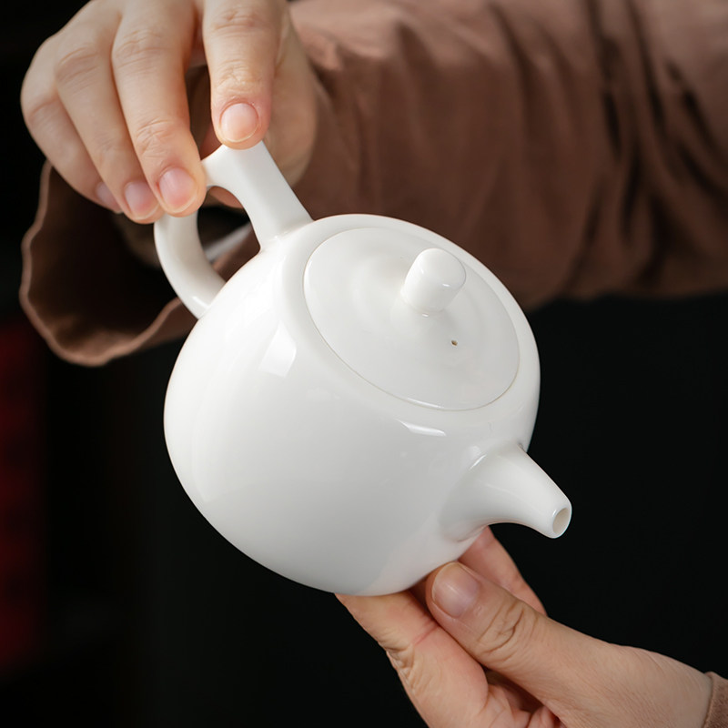 📚 德化白瓷井栏壶大容量陶瓷壶羊脂玉瓷内带滤孔功夫茶壶家用纯色壶