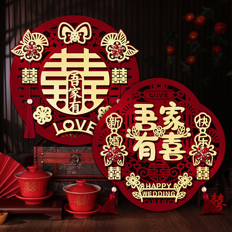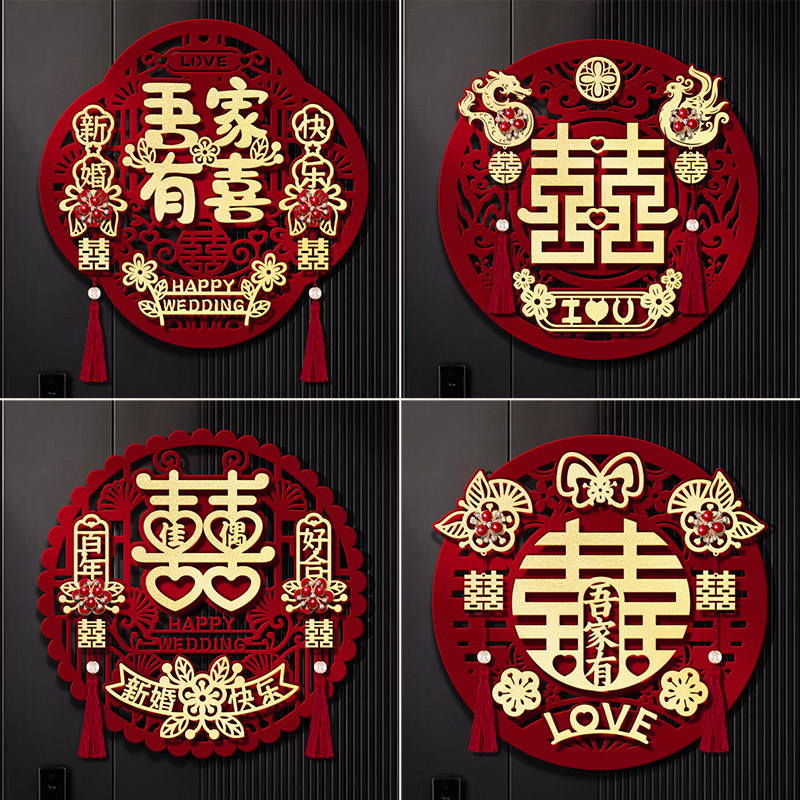 📚 喜字贴结婚专用植绒立体婚房布置装饰大门贴入户门饰房门囍字贴纸