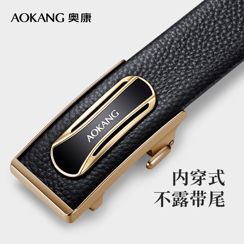 📚 奥康内穿皮带男款2026年新款潮流年轻人自动扣腰带头层牛皮裤带