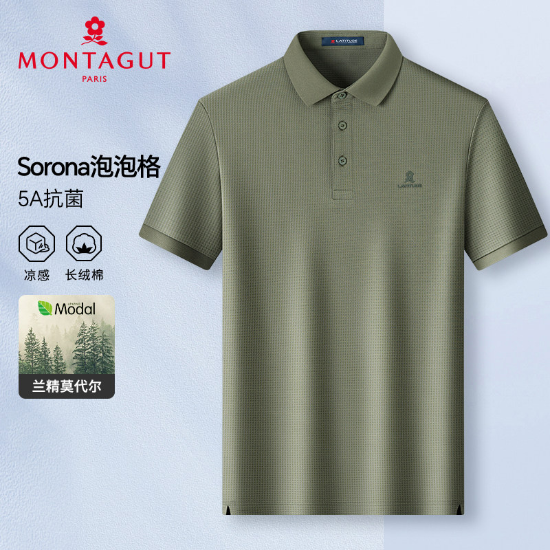 📚 [索罗娜/莫代尔棉]梦特娇夏男短袖Polo衫翻领抗菌泡泡格T恤凉感J