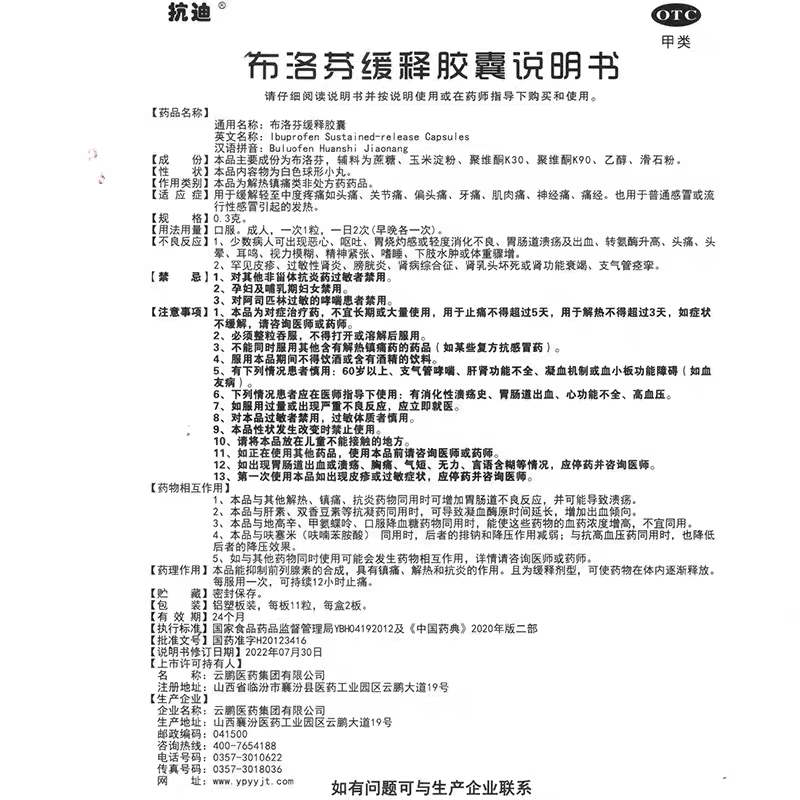 📚 抗迪布洛芬缓释胶囊0.3g*22粒适用发热感冒药镇痛头痛肌肉神经痛