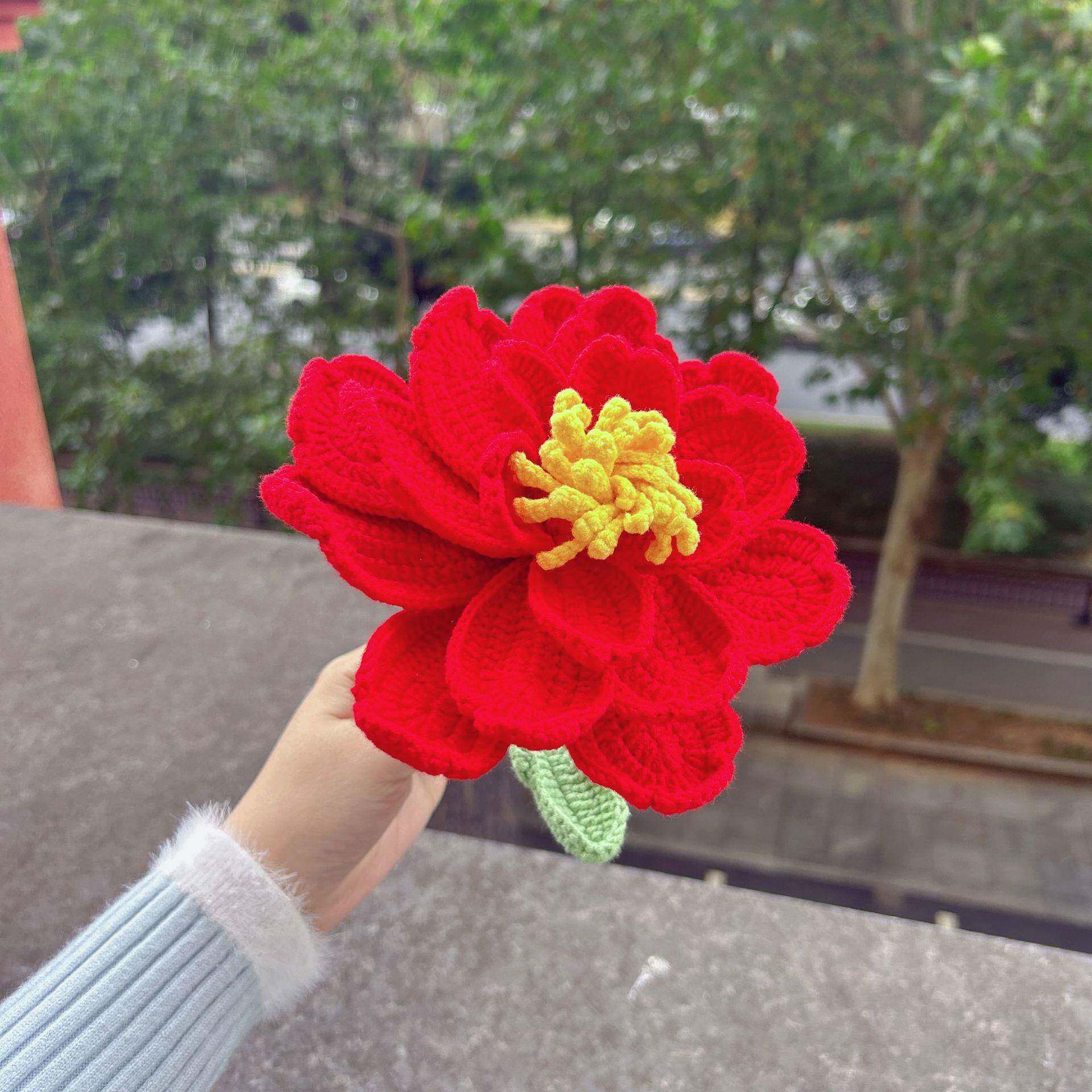 📚 大成品工毛钩织重工超牡丹花束仿真花线手编织送朋友母亲礼OUP物