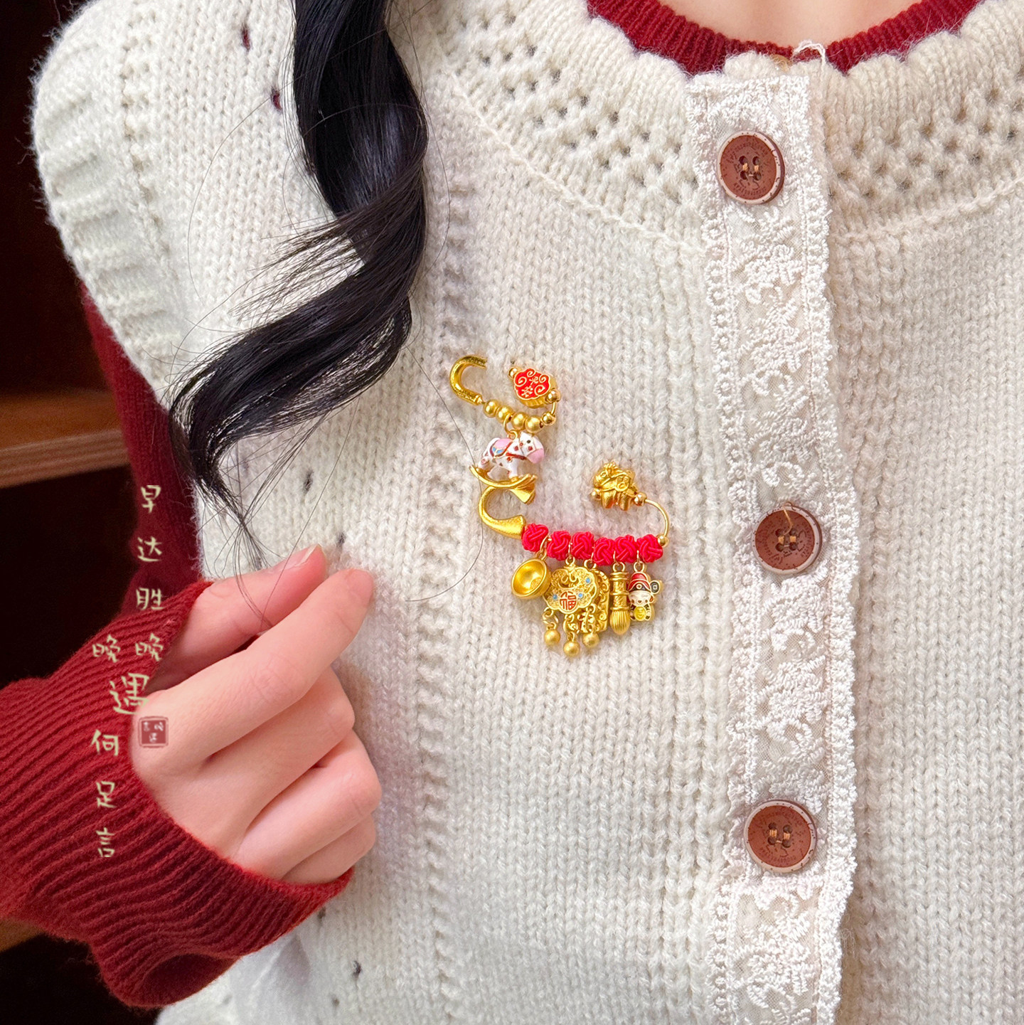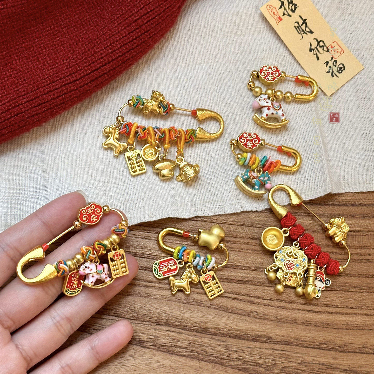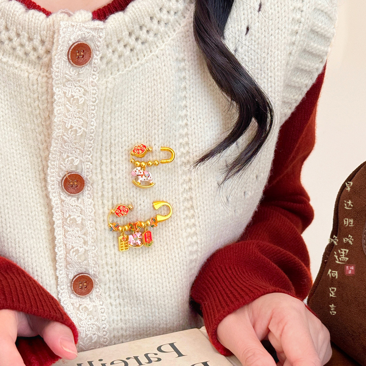 📚 [诸事顺遂]红色小马胸针女款新中式搭配毛衣别针固定扣平安挂件