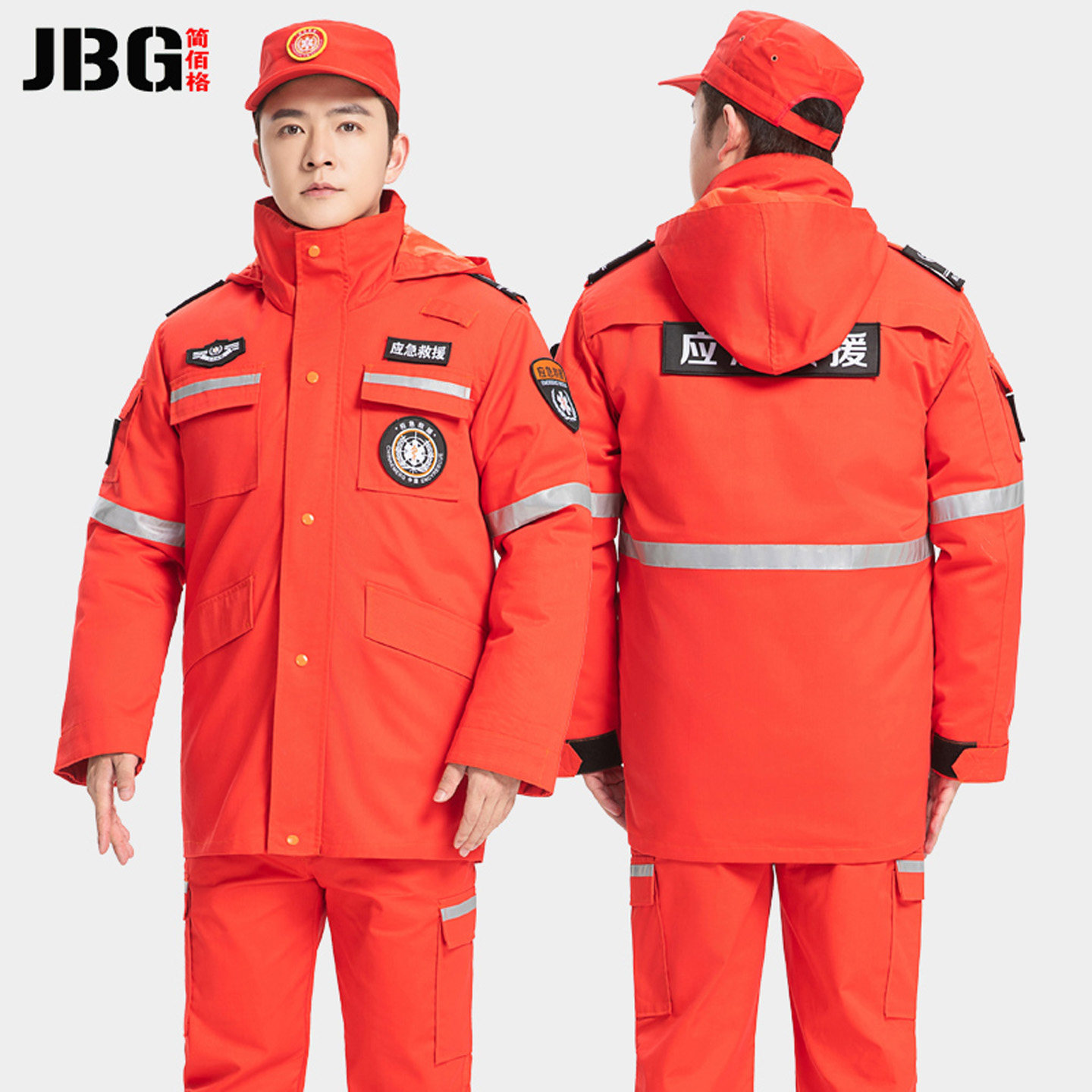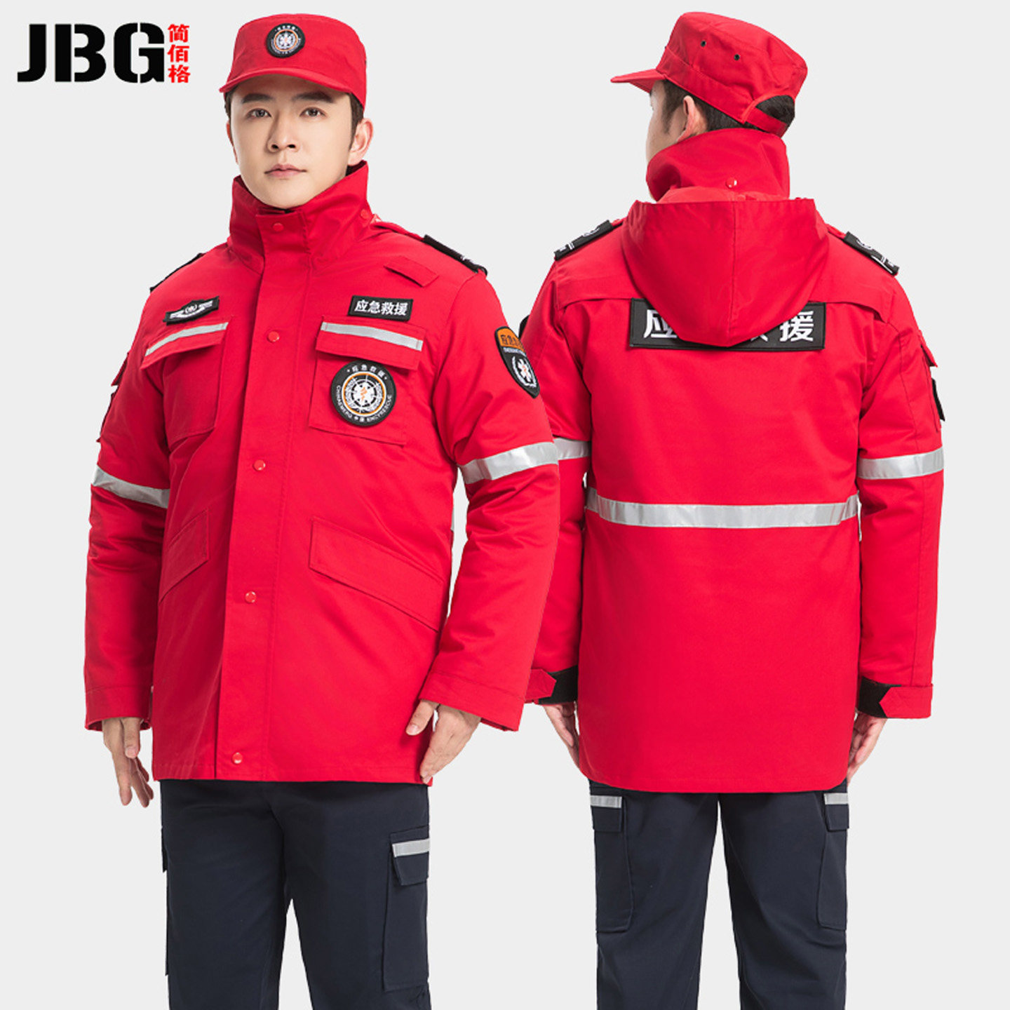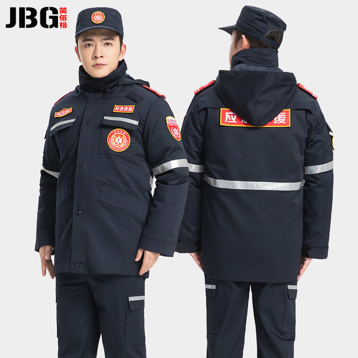 📚 蓝色冬季加厚应急救援棉服公益救援队工作服消防抢险搜救反光大衣