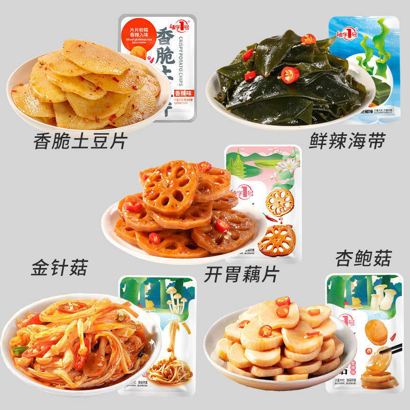 📚 味字1号海带片卤藕片香辣金针菇海带丝开袋即食杏鲍菇零食大礼包