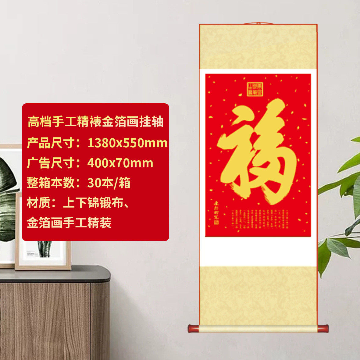 📚 康熙御笔过节中国风办公室客厅丝绢卷轴室内玄关新年福字装饰