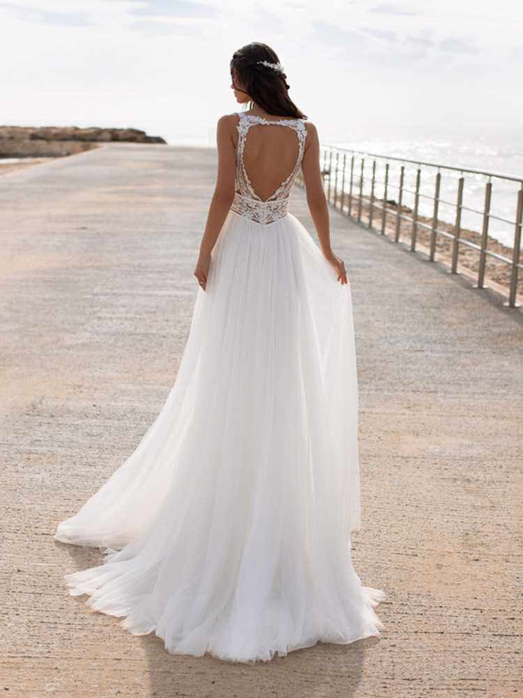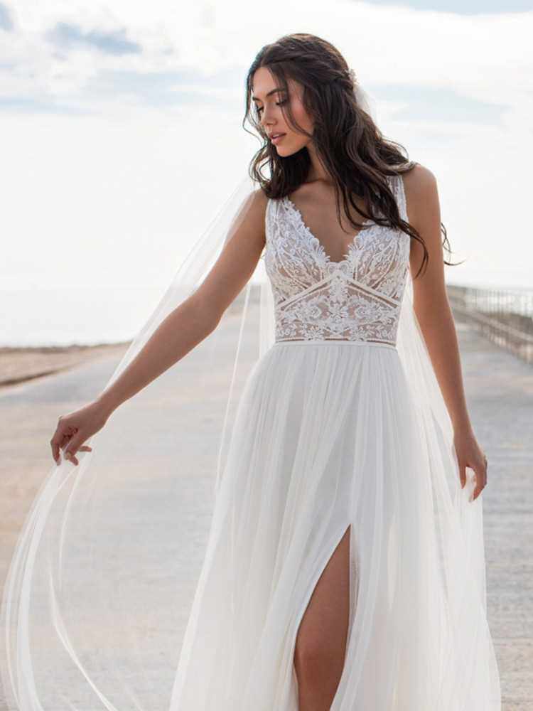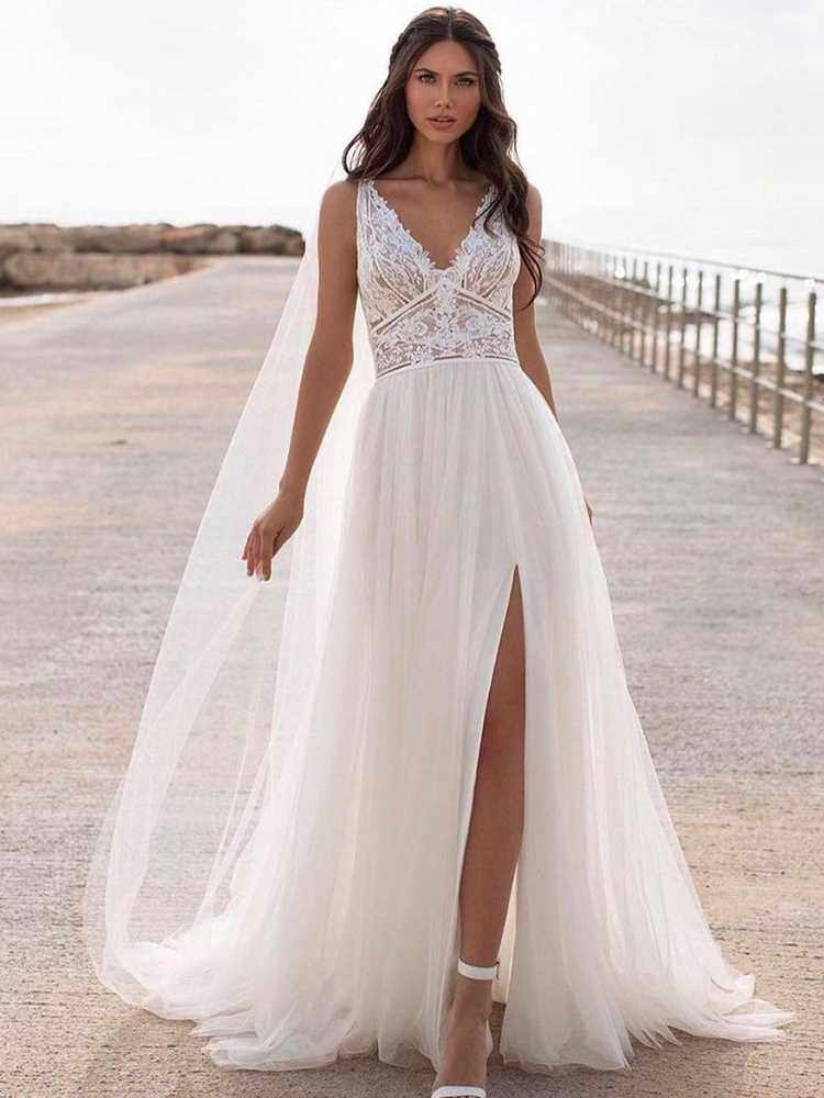 📚 Bohemian Wedding Dress Lace 2021 Split Tank Organza Sleevele