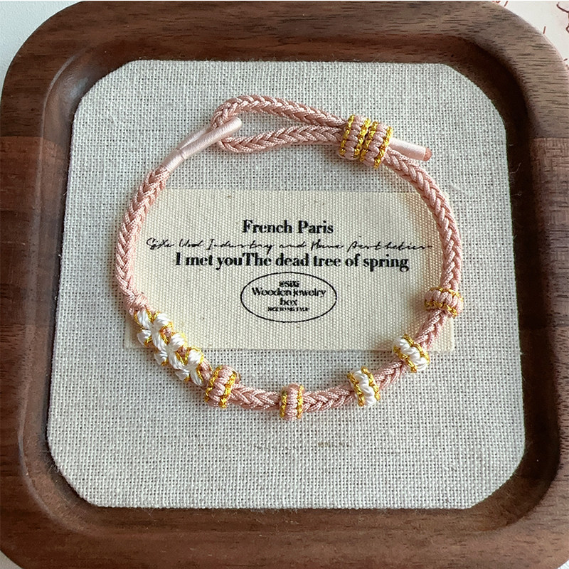 📚 手工编织八股桃花结手绳半成品可穿转运珠黄金饰品吊坠璎珞结手链