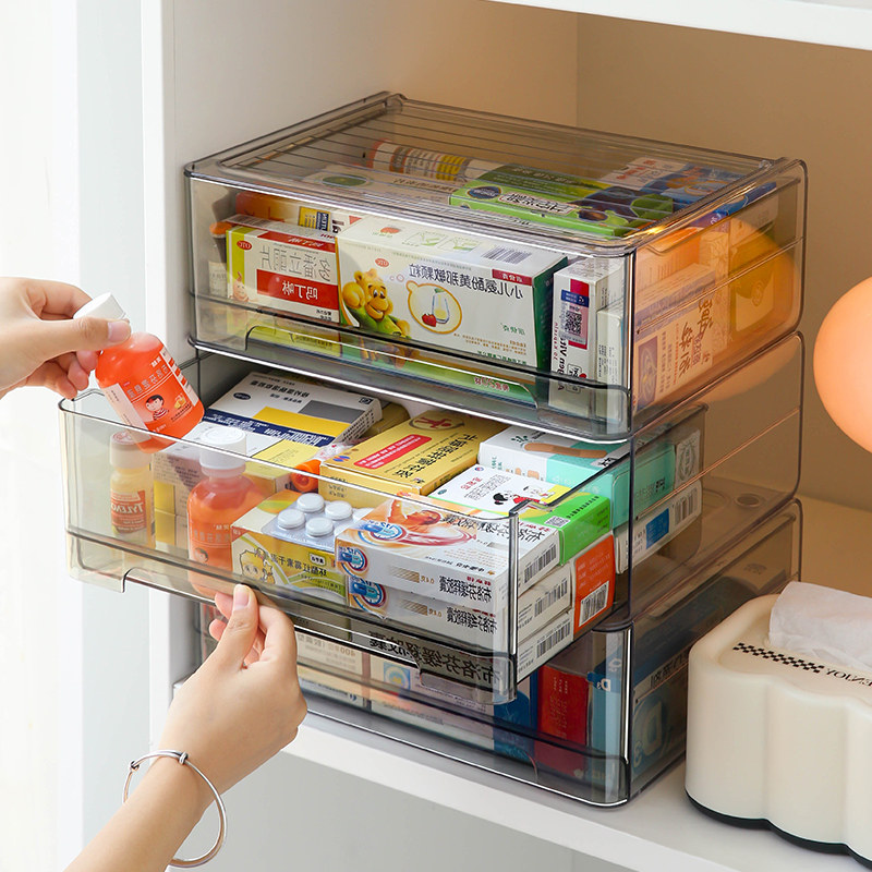 📚 抽屉式药品收纳置物盒透明药物整理箱柜子桌面亚克力多层药箱家用