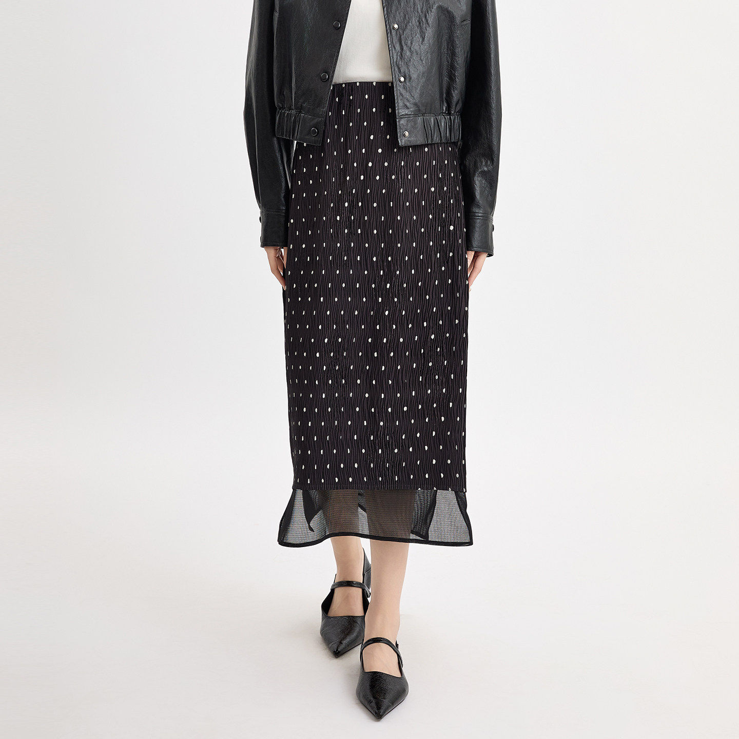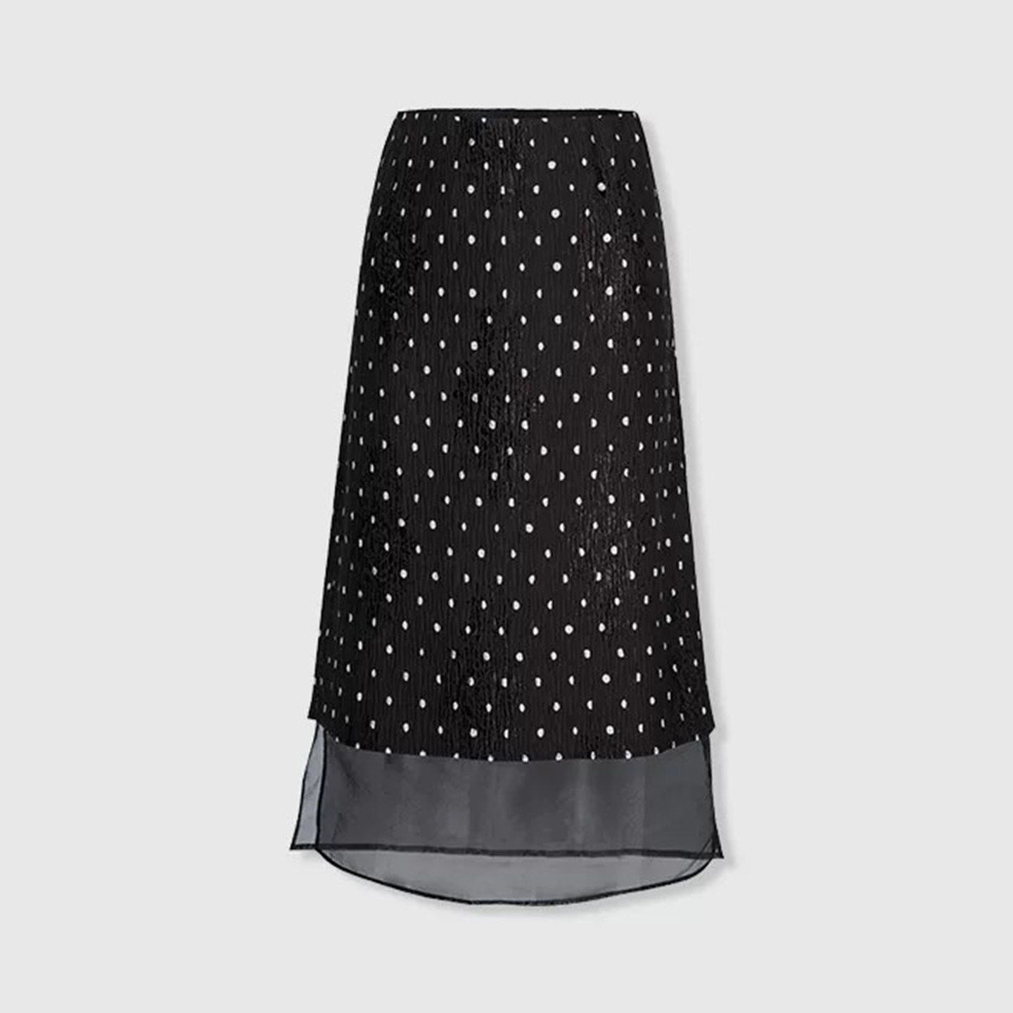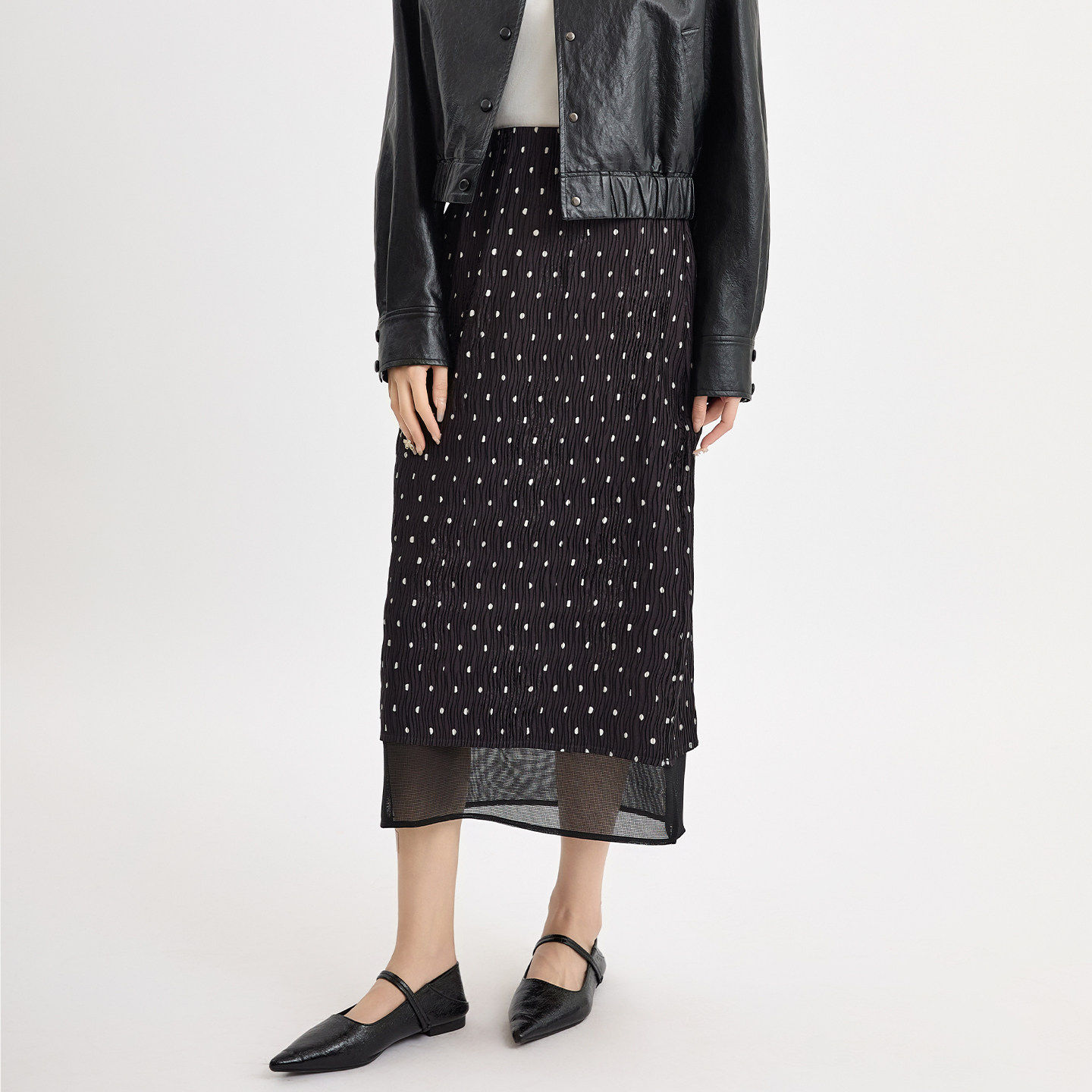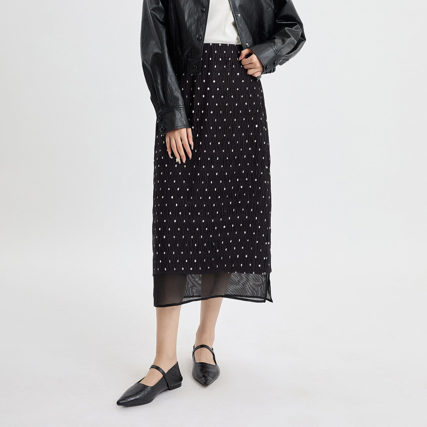 📚 芭依璐雪纺波点半身裙女2026春季中长款两侧开叉包臀显瘦直筒裙