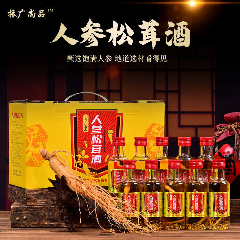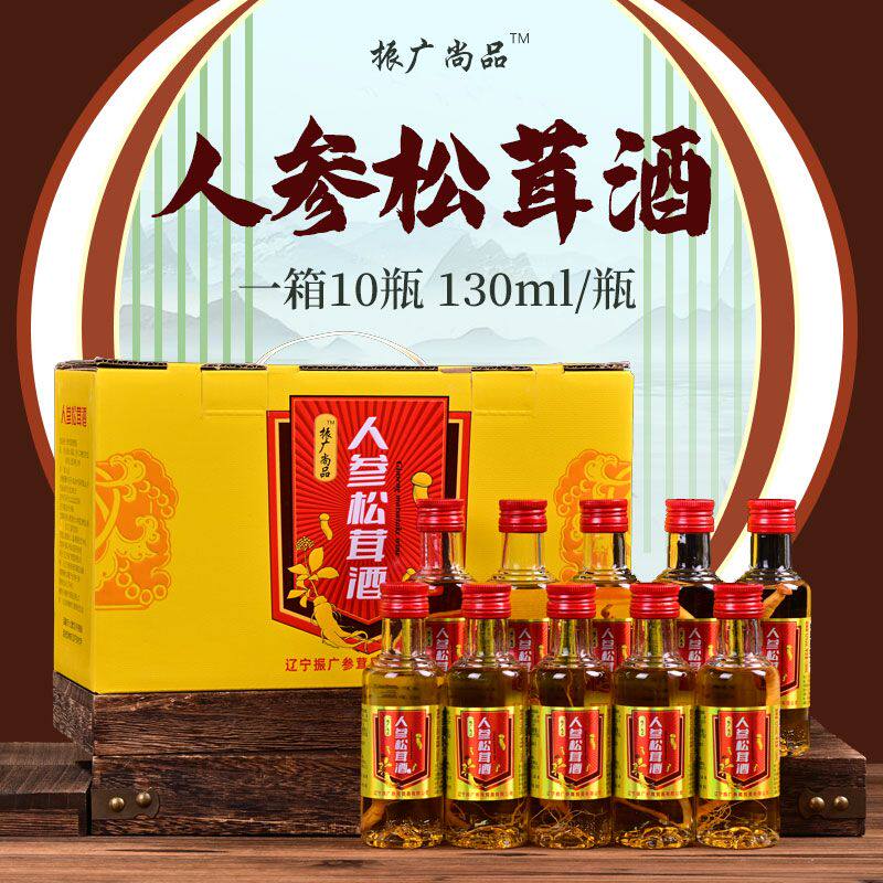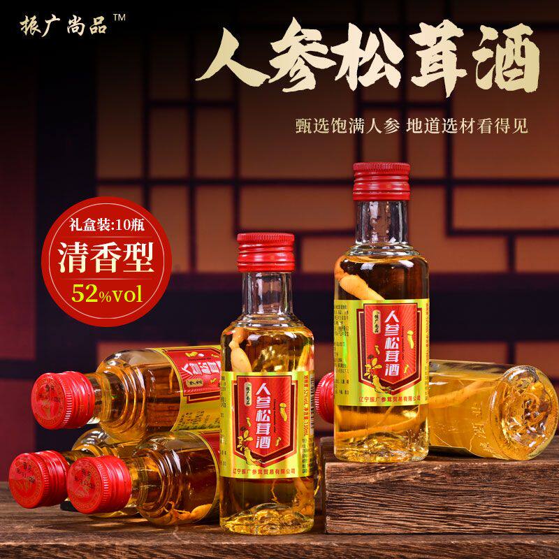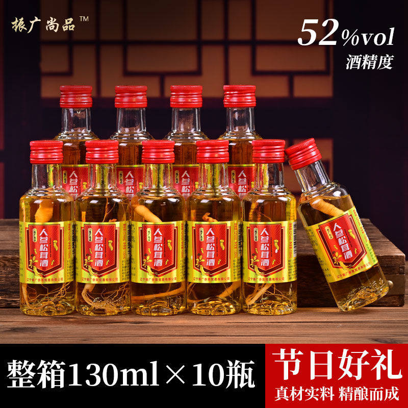 📚 东北振广尚品小瓶人参松茸酒52度纯粮食j130毫升10瓶整箱正品包邮
