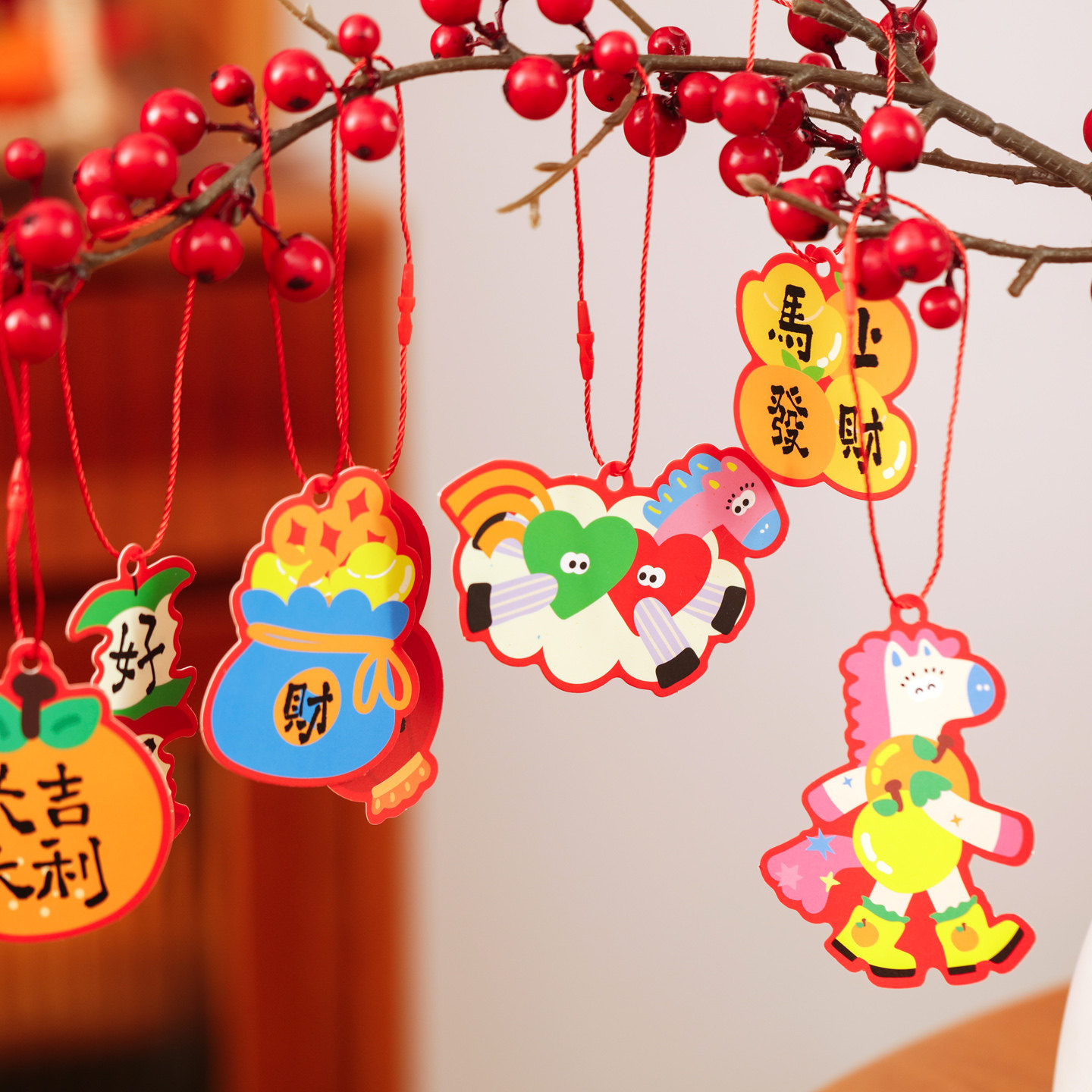📚 2026马年喜庆氛围吊卡新年装饰吊牌春节场景布置挂件盆景绿植挂饰