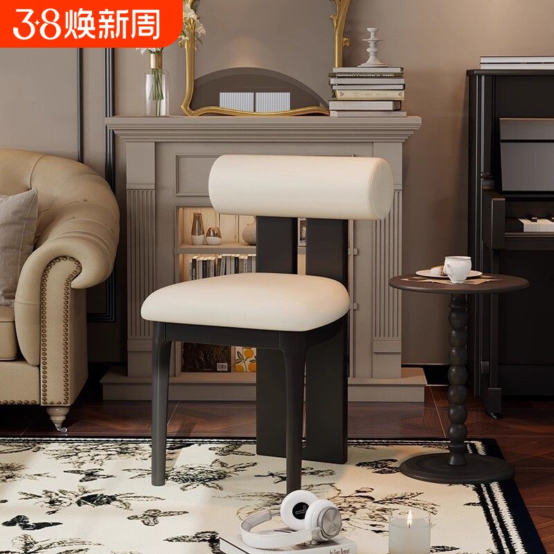 📚 中古风实木餐椅家用法式复古靠背椅子餐厅餐桌椅轻奢化妆河马椅凳