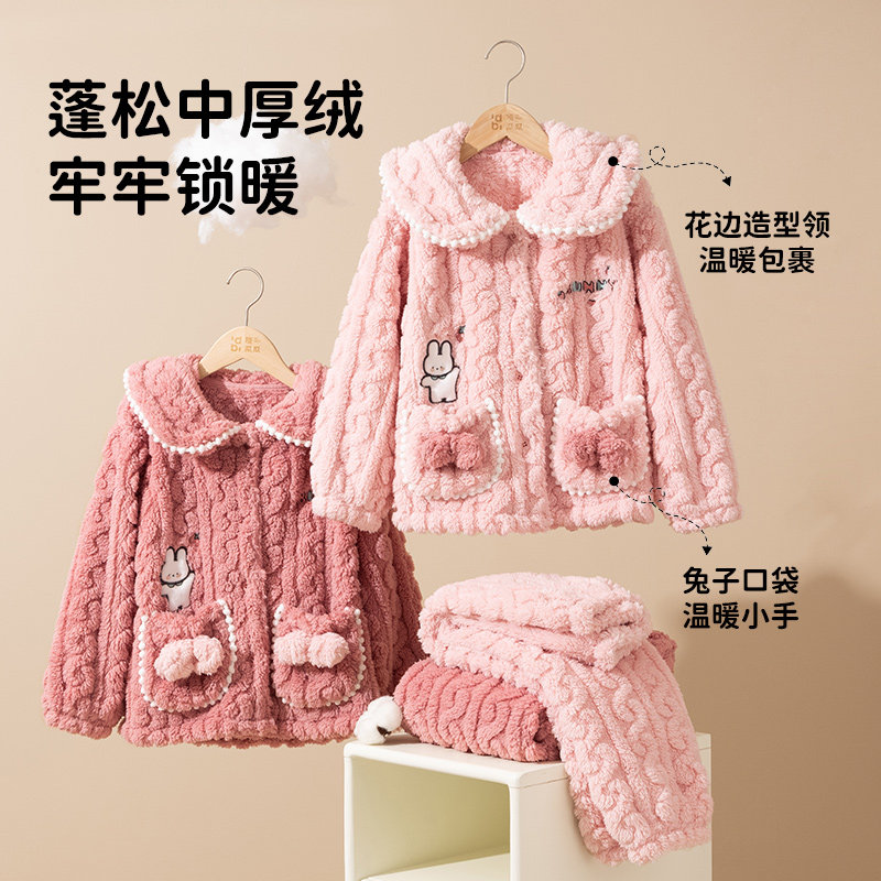 📚 顶呱呱女童法兰绒睡衣秋冬保暖小女孩珊瑚绒公主风中大童家居套装