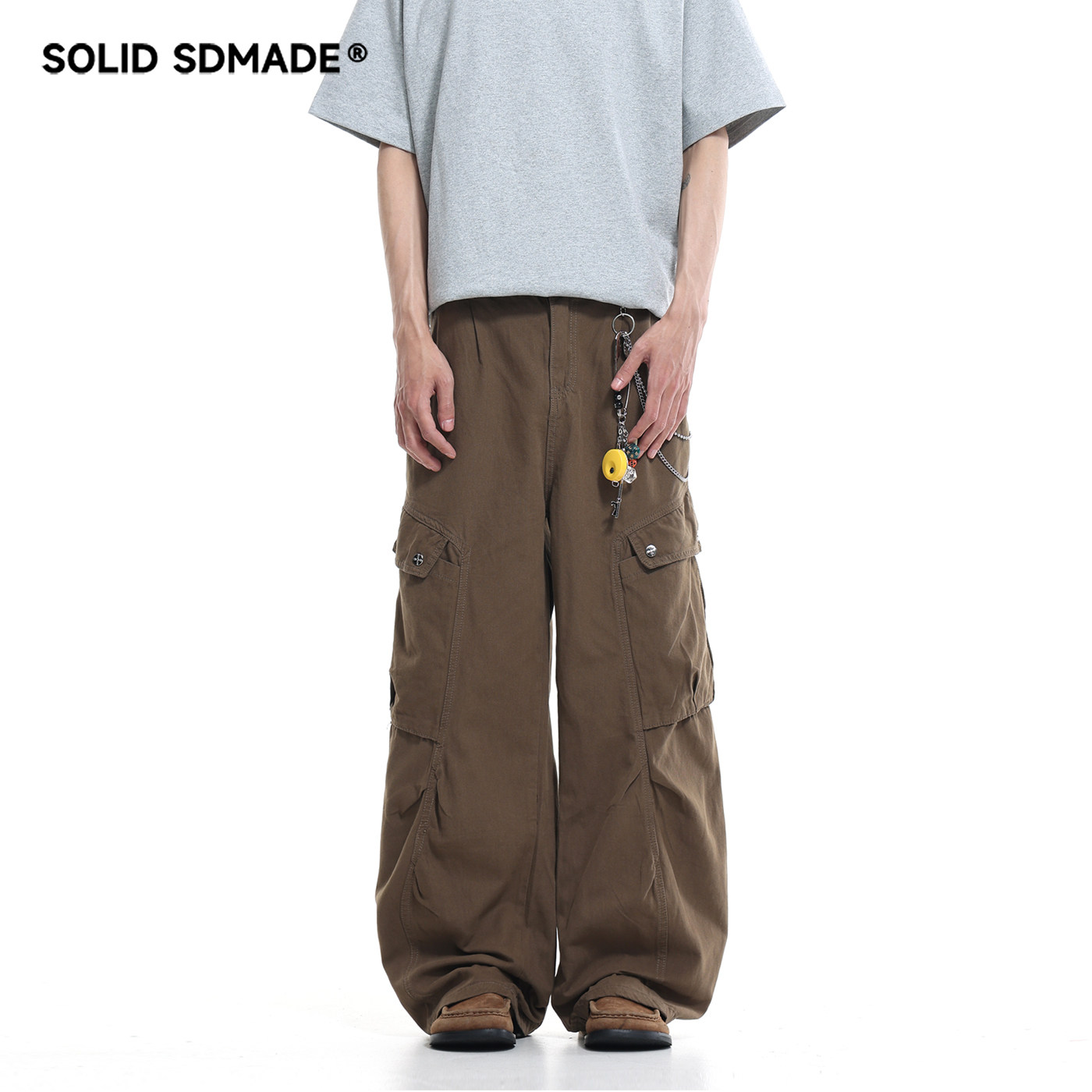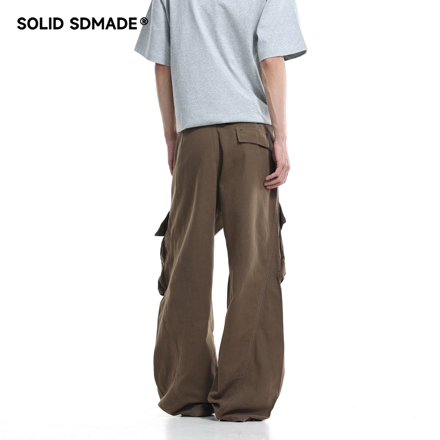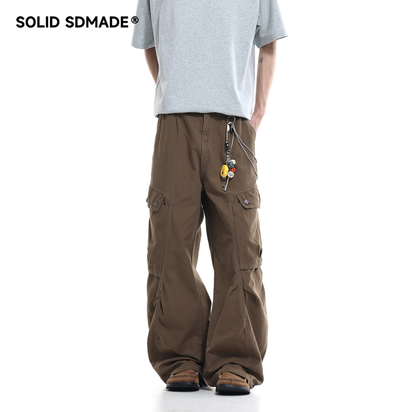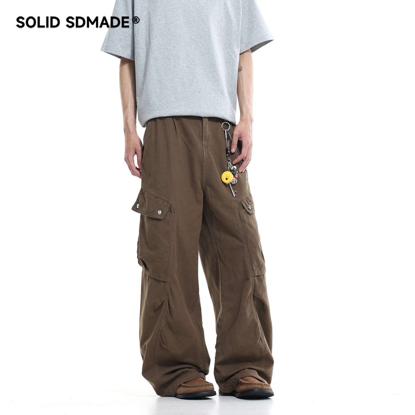 📚 SOLID SDMADE 美式复古做旧褶皱侧口袋工装裤男宽松阔腿休闲长裤