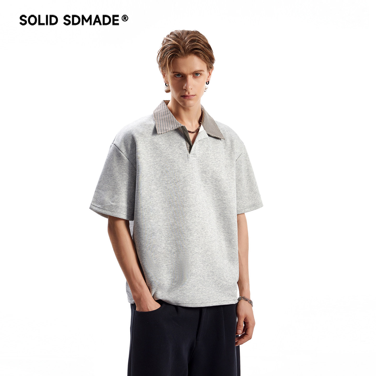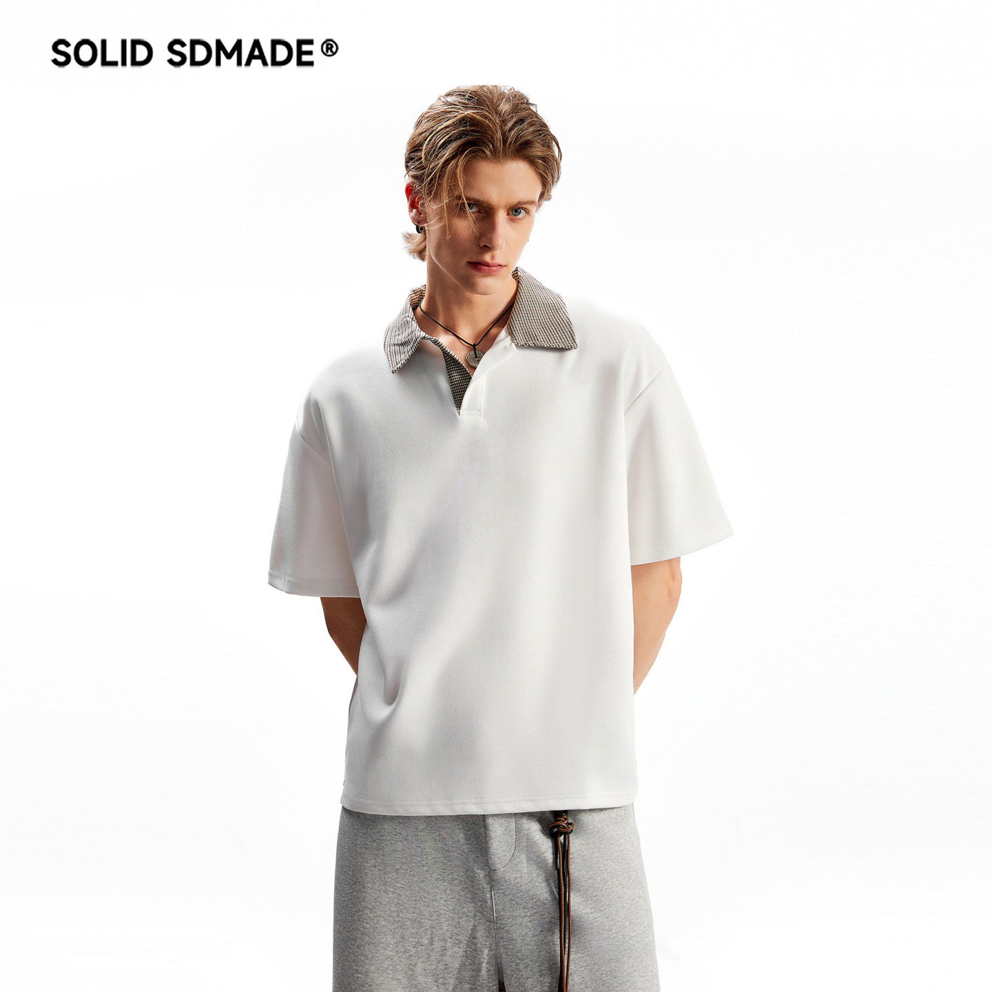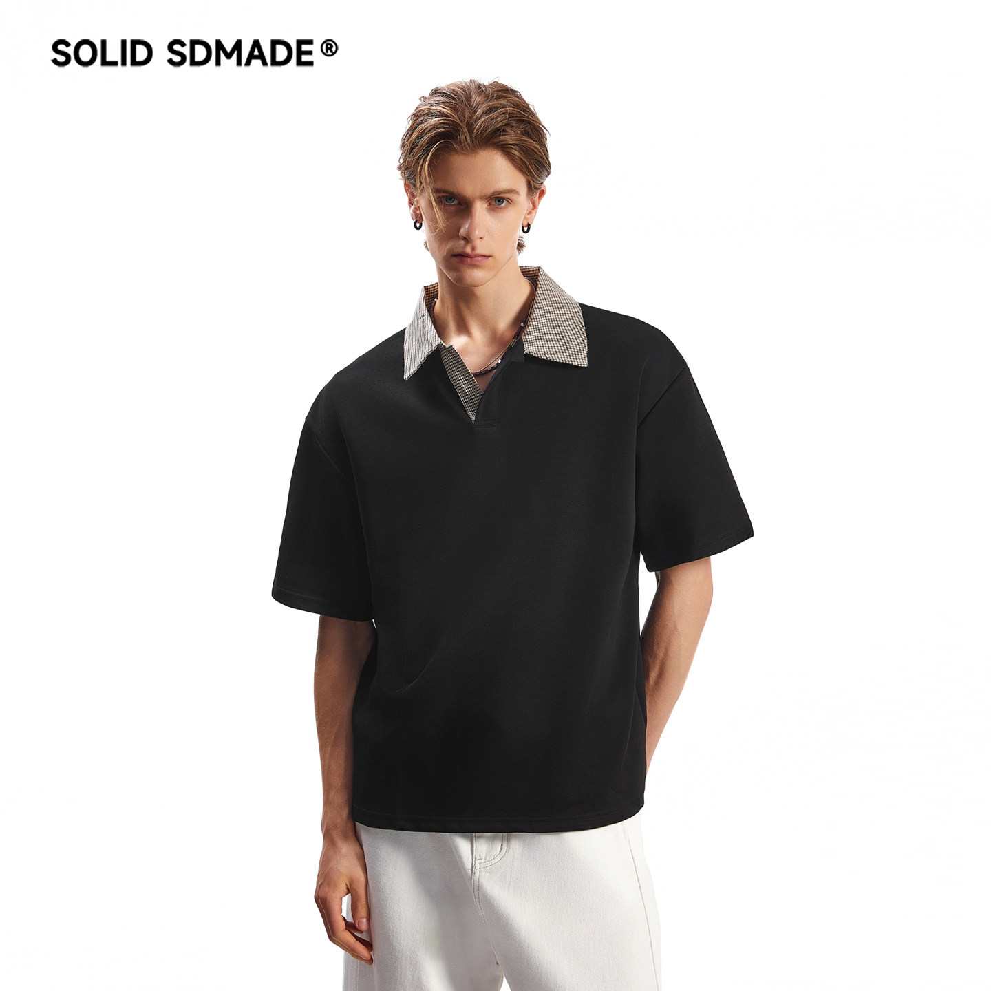 📚 SOLID SDMADE 千鸟格空气层短袖T恤男女美式复古老钱风半袖polo衫