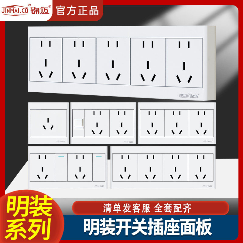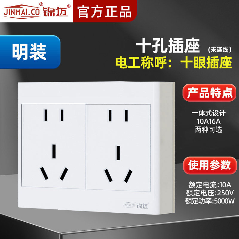 📚 大功率明装开关插座面板10十孔电源墙壁明线盒三开5五孔多孔家用