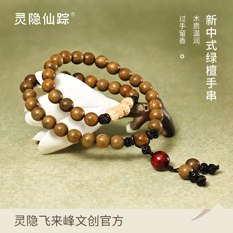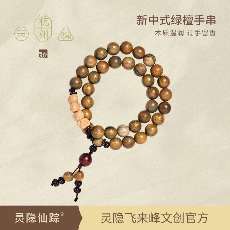 📚 【灵隐仙踪】绿檀木佛珠双圈手串老檀木百香籽手持念珠文玩旗舰店