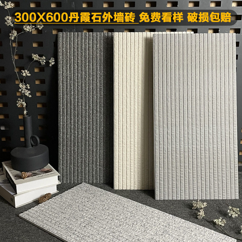 📚 古外墙砖300x600丹霞石瓷砖别墅庭院围墙拉槽砖流水石外墙瓷砖