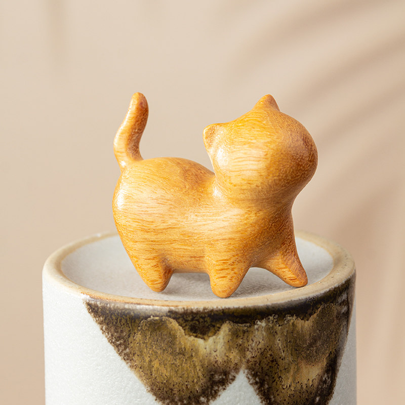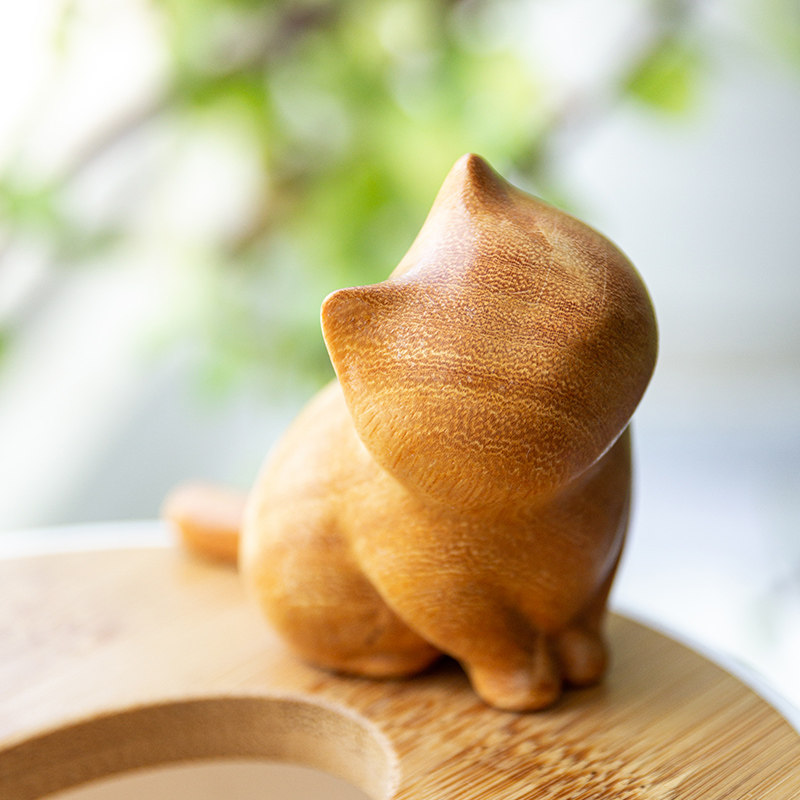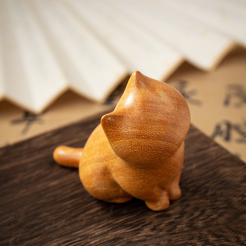 📚 檀香木小猫木雕手把件文玩创意个性复古室内办公桌摆件家居装饰品