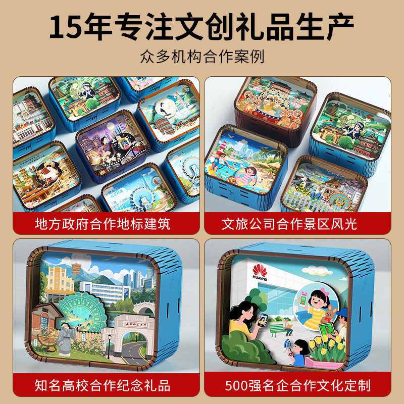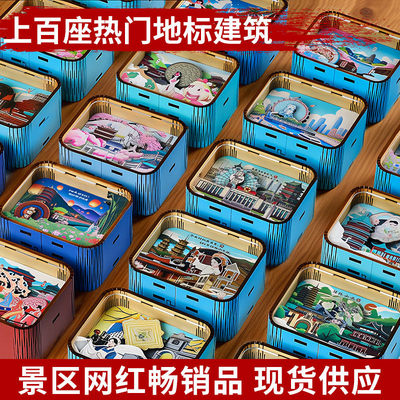 📚 原创木质音乐盒城市景点文创八音盒旅游纪念品国潮摆件冰箱贴摆摊