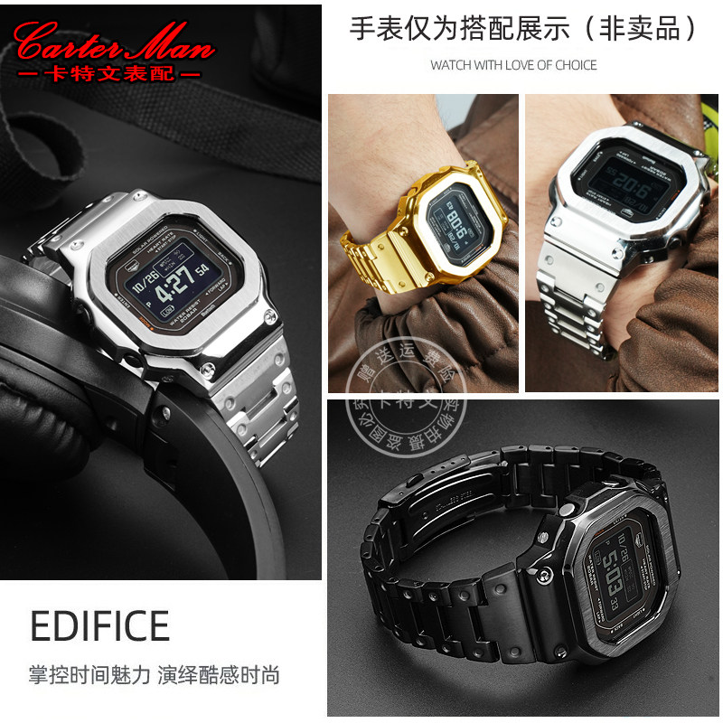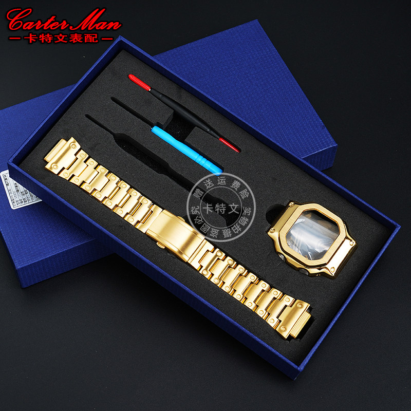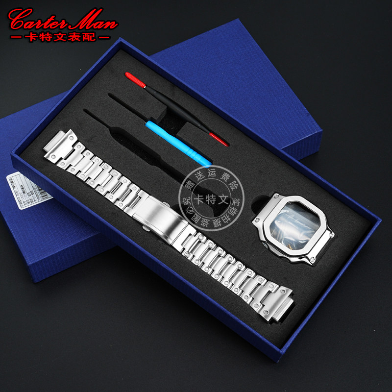 📚 卡特文适配卡西欧小方块DW-H5600系列改装实芯精钢手表带表壳配件